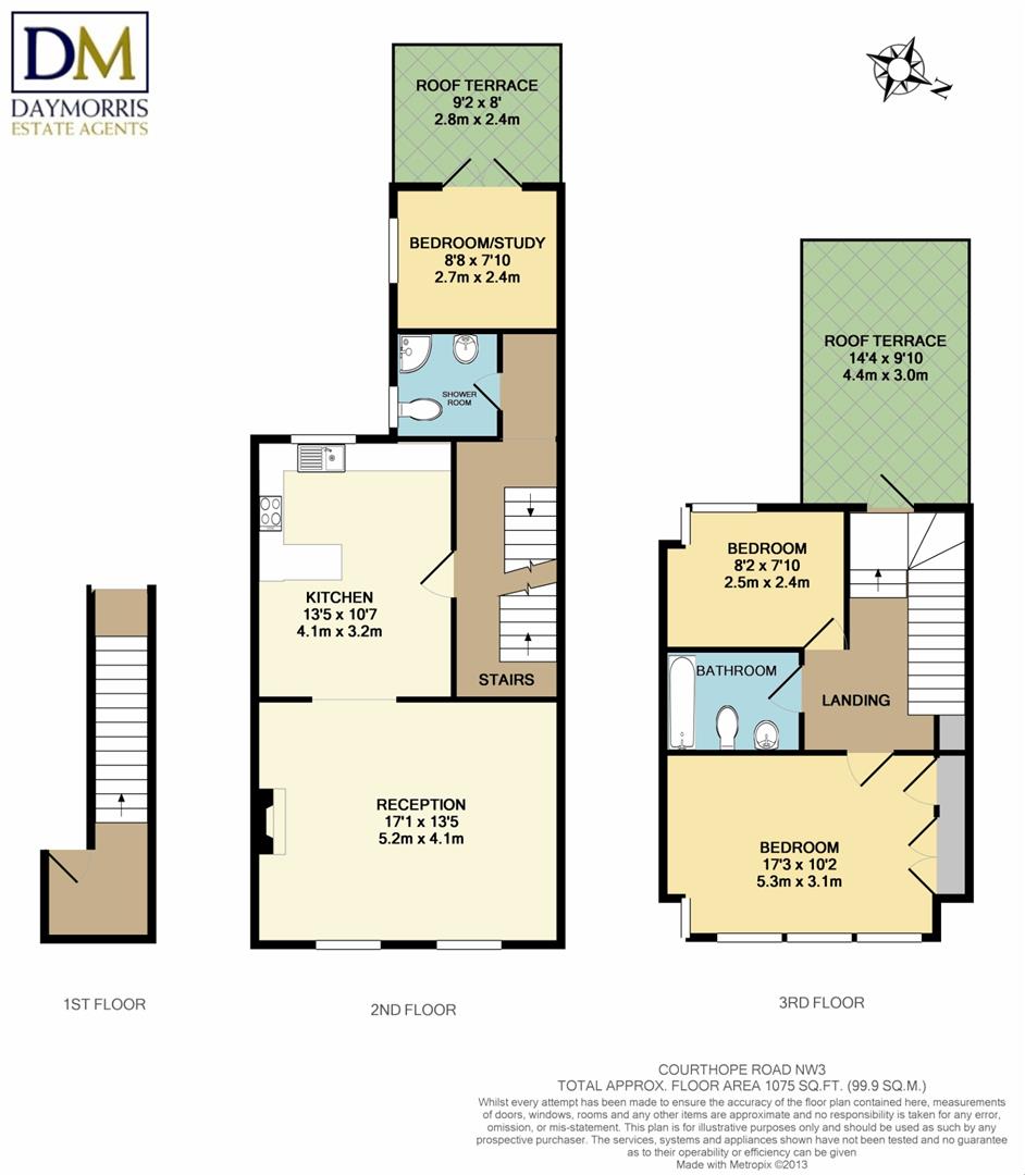 This very lovely three bedroom apartment is arranged over the upper floors of a converted Victorian house, and is positioned on Courthope Road which forms part of the particularly pleasant Mansfield Conservation Area. The property has been tastefully modernised throughout, and offers a good sized living area and open plan kitchen with an abundance of natural light. There is also the additional benefit of two roof terrace areas, a rare find in flats of this type within these streets. Courthope Road is just a few minutes walk from Parliament Hill and Hampstead Heath, along with the bustling shopping district of South End Green.