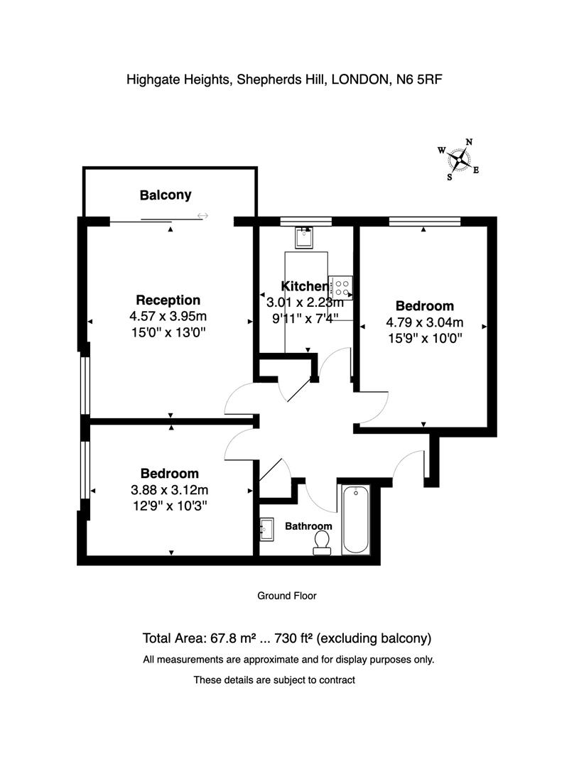 A superb two bedroom ground floor flat with balcony overlooking communal garden and allotments beyond at the rear of modern six storey purpose built block of 22 apartments constructed in the 1960’s. Situated in a convenient location between Highgate (Northern Line) Underground Station and Crouch End Broadway.