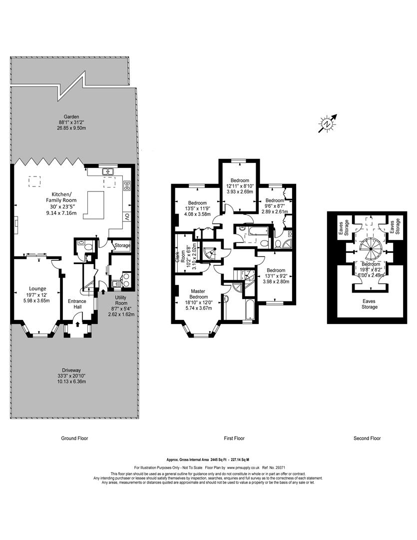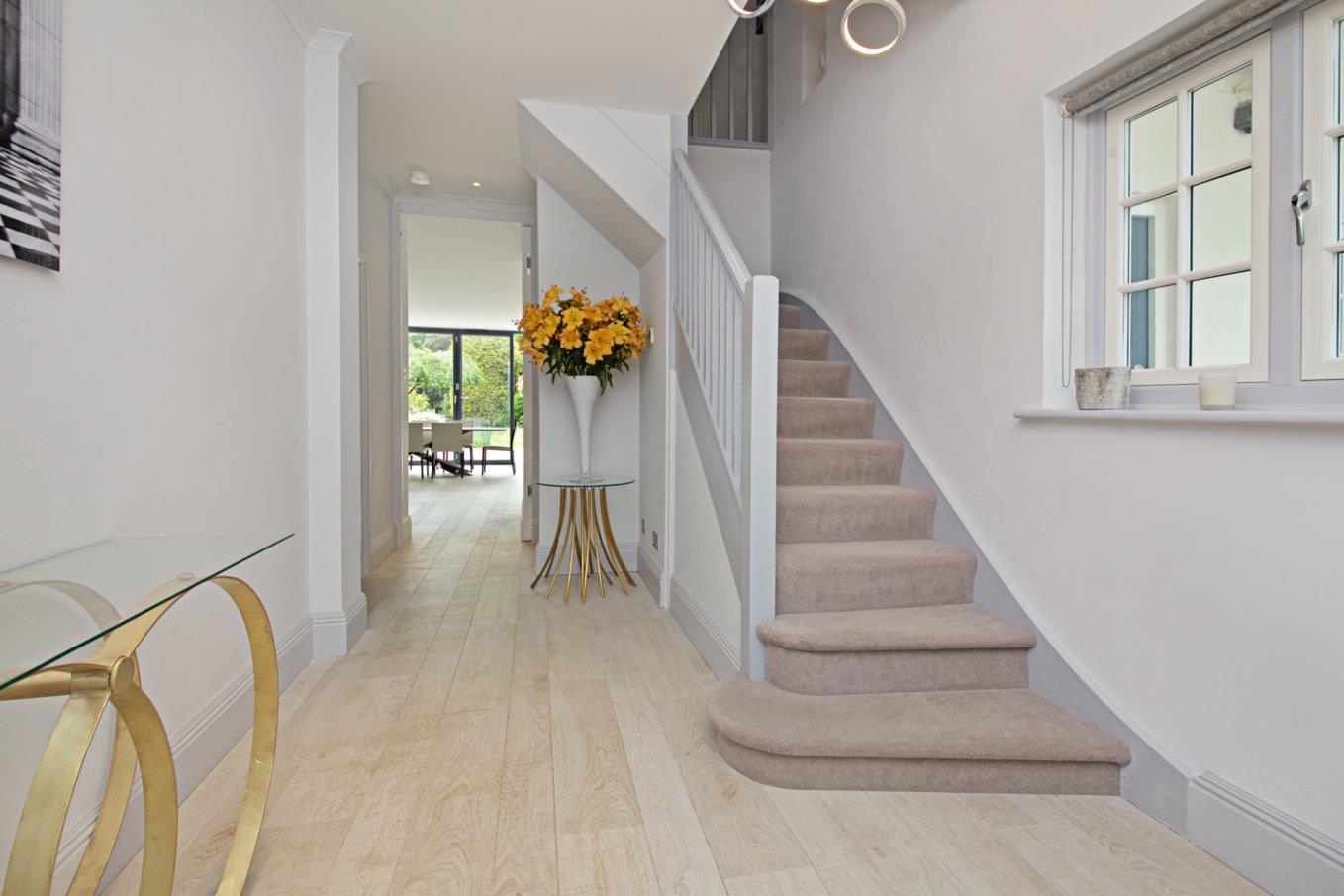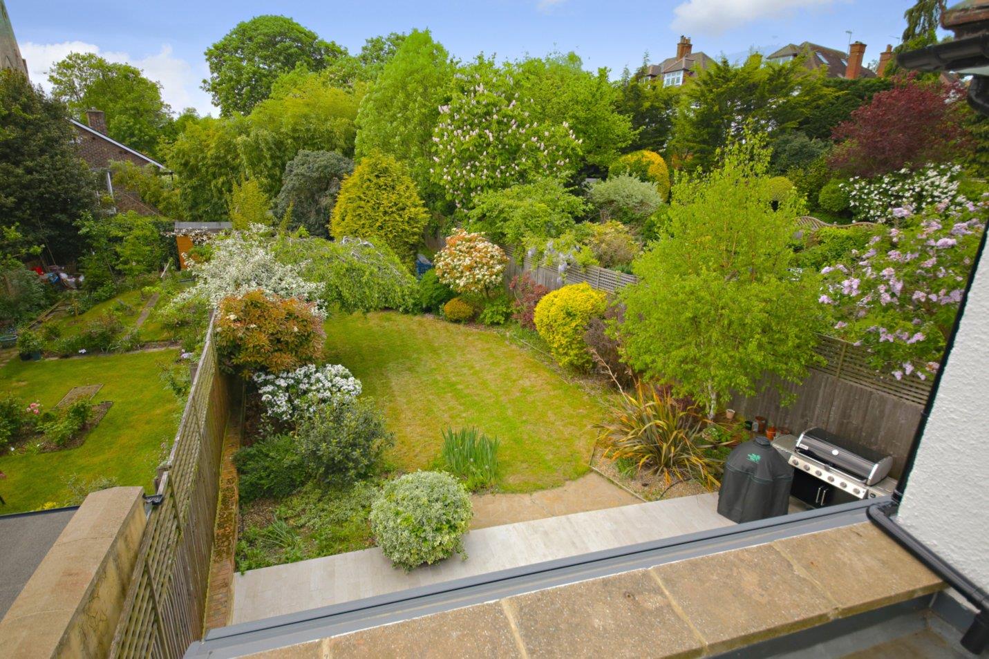 A beautifully presented light spacious family house situated on the popular Holly Lodge Estate conveniently placed for local shops and restaurants in Swains Lane, and within short stroll of the vast open expanse of Hampstead Heath. Nearby is also a C2 & 214 bus stop, providing connection to Kentish Town underground and main line stations, as well as to Oxford Circus or St. Pancras. The property has master a bedroom with en suite dressing room & bathroom, 4 further bedrooms, family bathroom, and shower room en suite on the first floor. There is a spiral staircase leading to the second floor where there is a studio room which is currently used as a study and provides space for 2 desks. from here commands outstanding views towards the City. On the ground floor there are 2 reception rooms, superb kitchen/breakfast room, utility room, larder, and cloakroom. Externally there is off street parking for 2/3 cars, and an 88′ westerly rear garden. EPC Rating D.