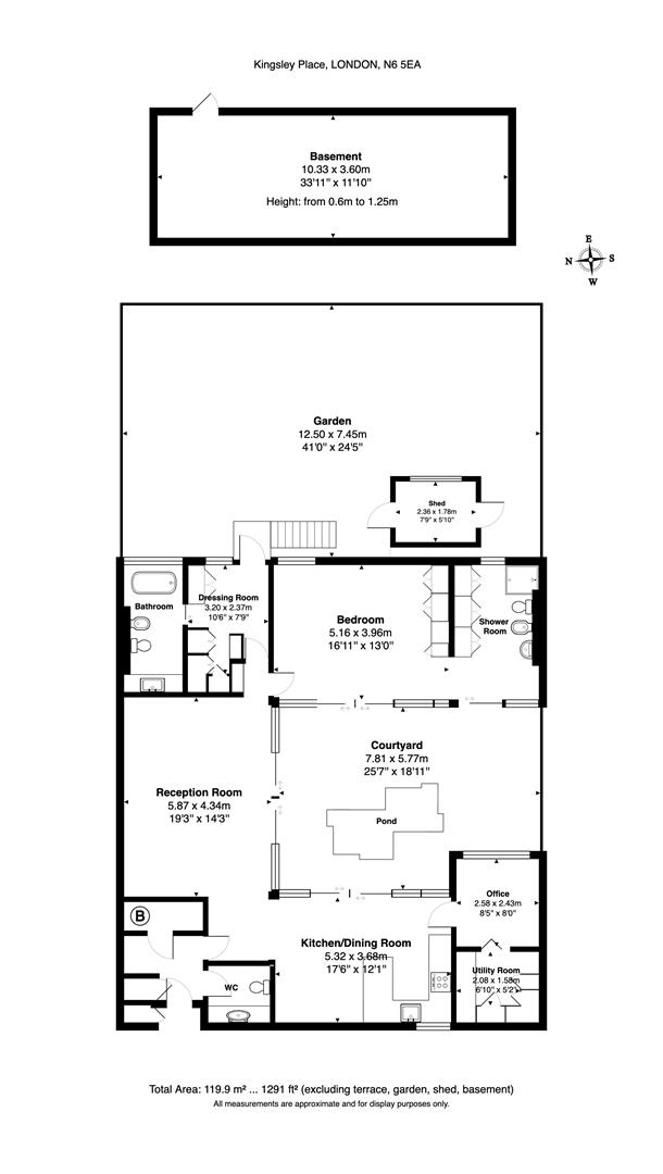 * Large Bedroom * Shower Room en Suite * Dressing Room * Bathroom * Reception Room * Dining Room * Kitchen Area * Utility Room * Study * Guest Cloakroom * Central Courtyard * Rear Garden * Shed * Basement * Council Tax Band G *