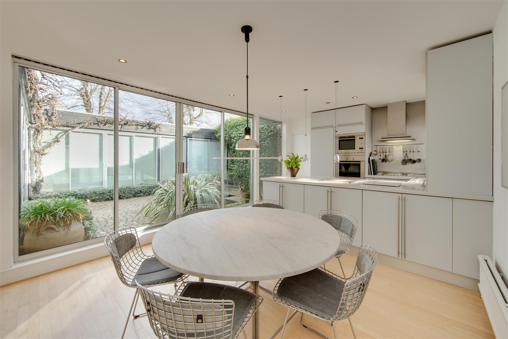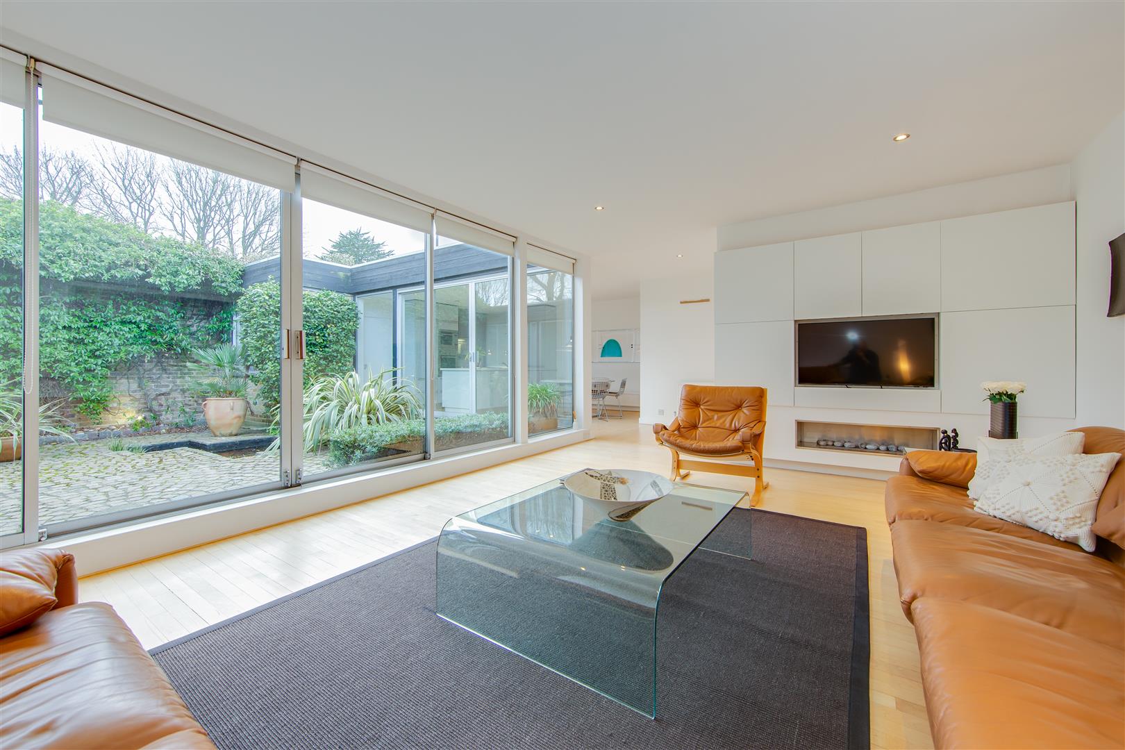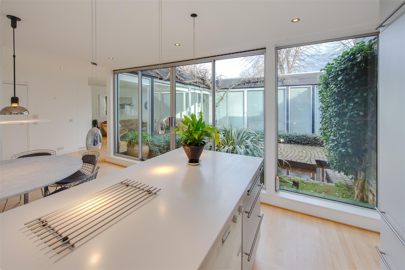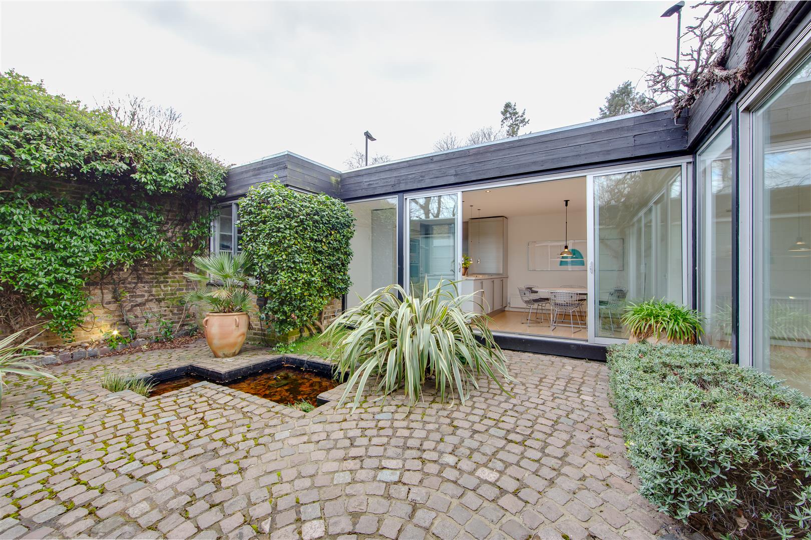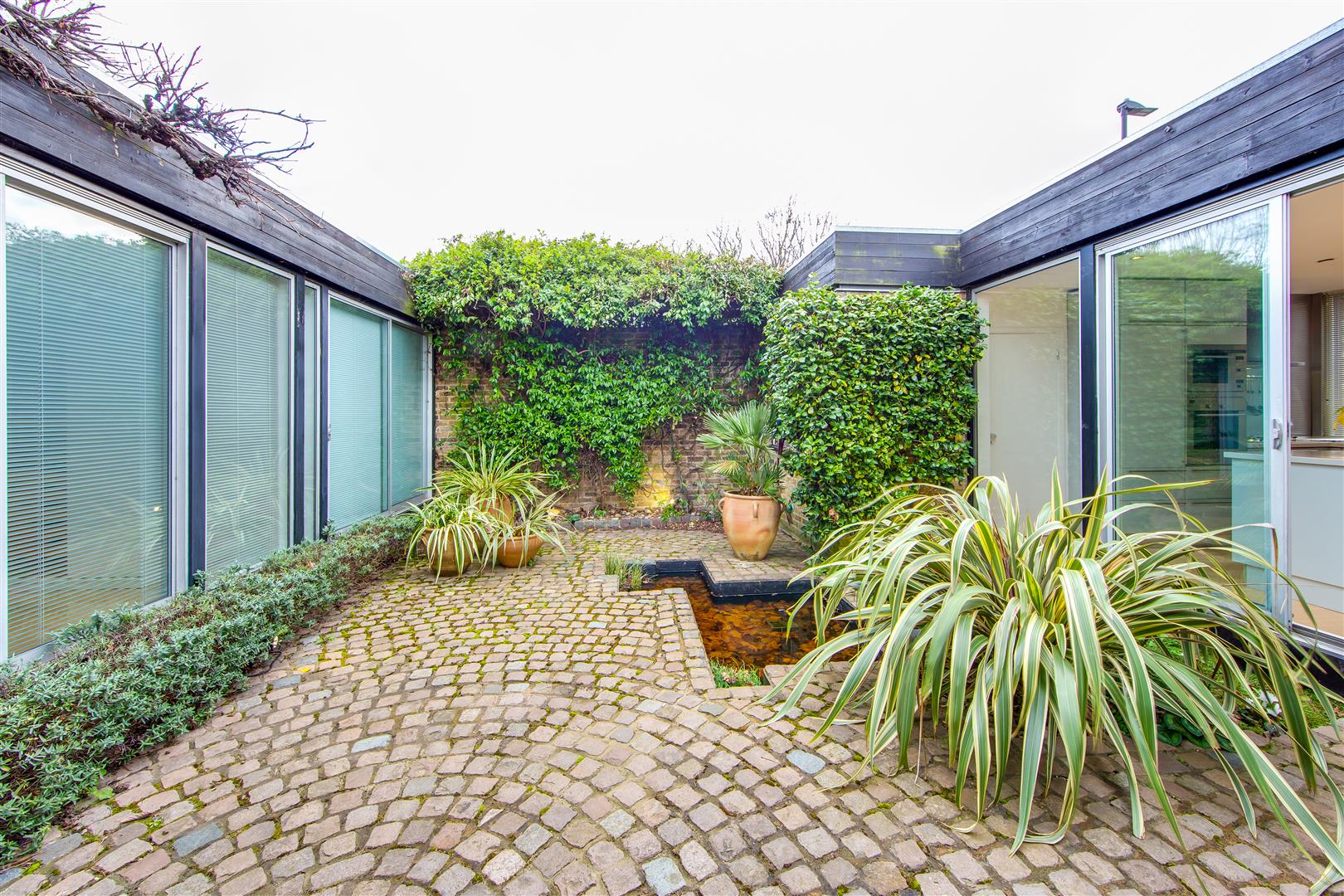A superb single storey house built around a delightful central courtyard, with large windows affording an abundance of natural light. Originally three bedrooms, the property has been beautifully redesigned and now comprises a large bedroom with shower room en suite, dressing room and bathroom, large open plan reception room, dining room and kitchen. (The dressing room and bathroom could be reconfigured to create a good sized double second bedroom with an adjacent second shower room). There is also the possibility of creating additional accommodation by excavation at basement level at the rear (subject to planning consent). Situated in a desirable cul-de-sac setting off Southwood Lane, between Highgate High Street and Highgate (Northern Line) Underground Station, as well as being conveniently placed for Waterlow Park and Hampstead Heath.