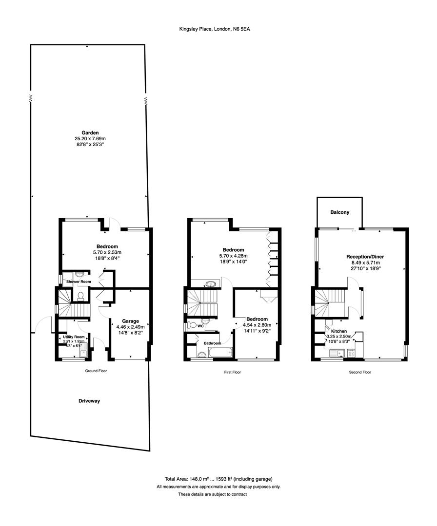 A modern semi-detached Town House, built 1969, with accommodation arranged over three floors, comprising a spacious reception room with balcony and kitchen on the top floor. Spacious principal bedroom, second bedroom, bathroom and separate WC on the first floor. The ground floor has an entrance hall, utility room, bedsitting room with shower room en-suite, and integral garage. The property features a delightful West facing rear garden extending to over 82ft with a raised end section that has the feeling of a secret garden. There is also a car parking forecourt. Situated in a desirable cul-de-sac setting off Southwood Lane, between Highgate High Street and Highgate (Northern Line) Underground Station, as well as being conveniently placed for Waterlow Park and Hampstead Heath.