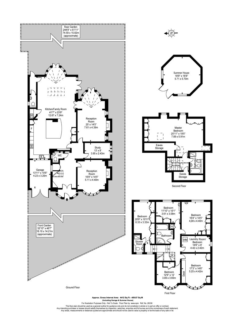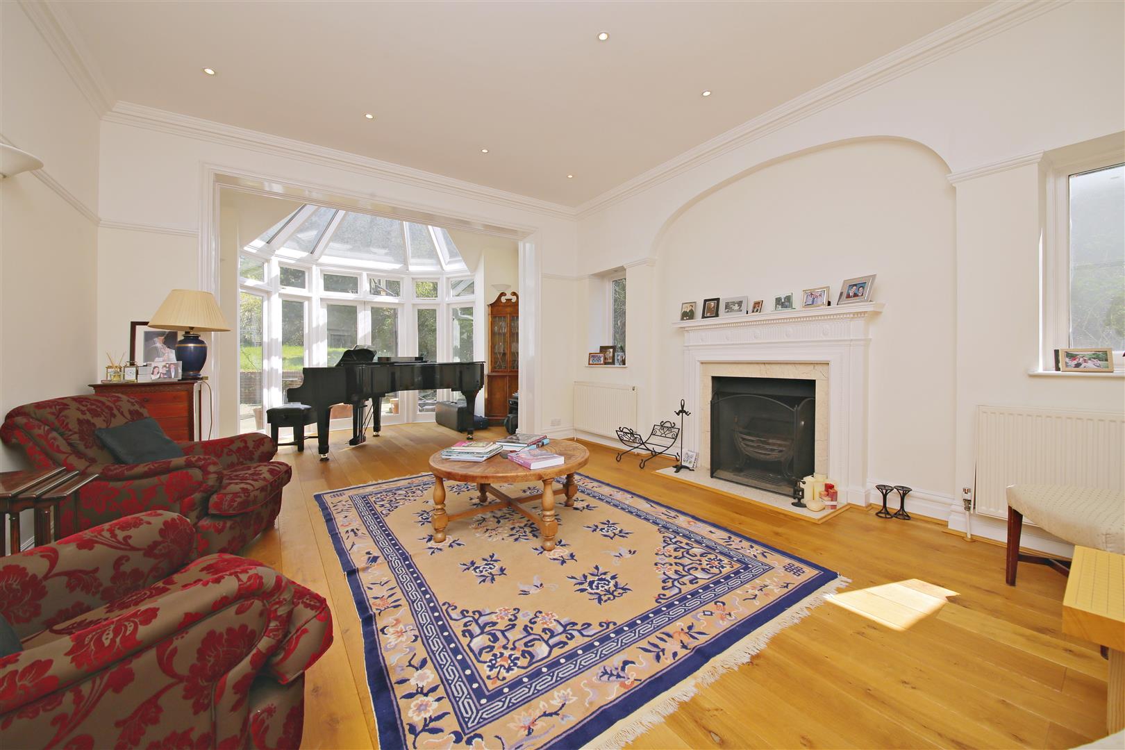 A rare opportunity to acquire a substantial and imposing detached family house of approx 4,412 sq ft (including garage and summer house) with an astonishingly large garden of 244 ft, literally on the doorstep of Highgate Wood. This wonderful home has bright and spacious accommodation which is well planned and features a magnificent kitchen/family room of 41’7 x 23’9 leading to the garden. Also in the garden is an attractive octagonal summer house. Accommodation comprises; Master bedroom with en-suite bathroom, 6 further bedrooms, en-suite shower room, family bathroom, 3 receptions, kitchen/family room, 2 guest WC’s, garage and off street parking for 3 cars, summer house and 244′ garden.