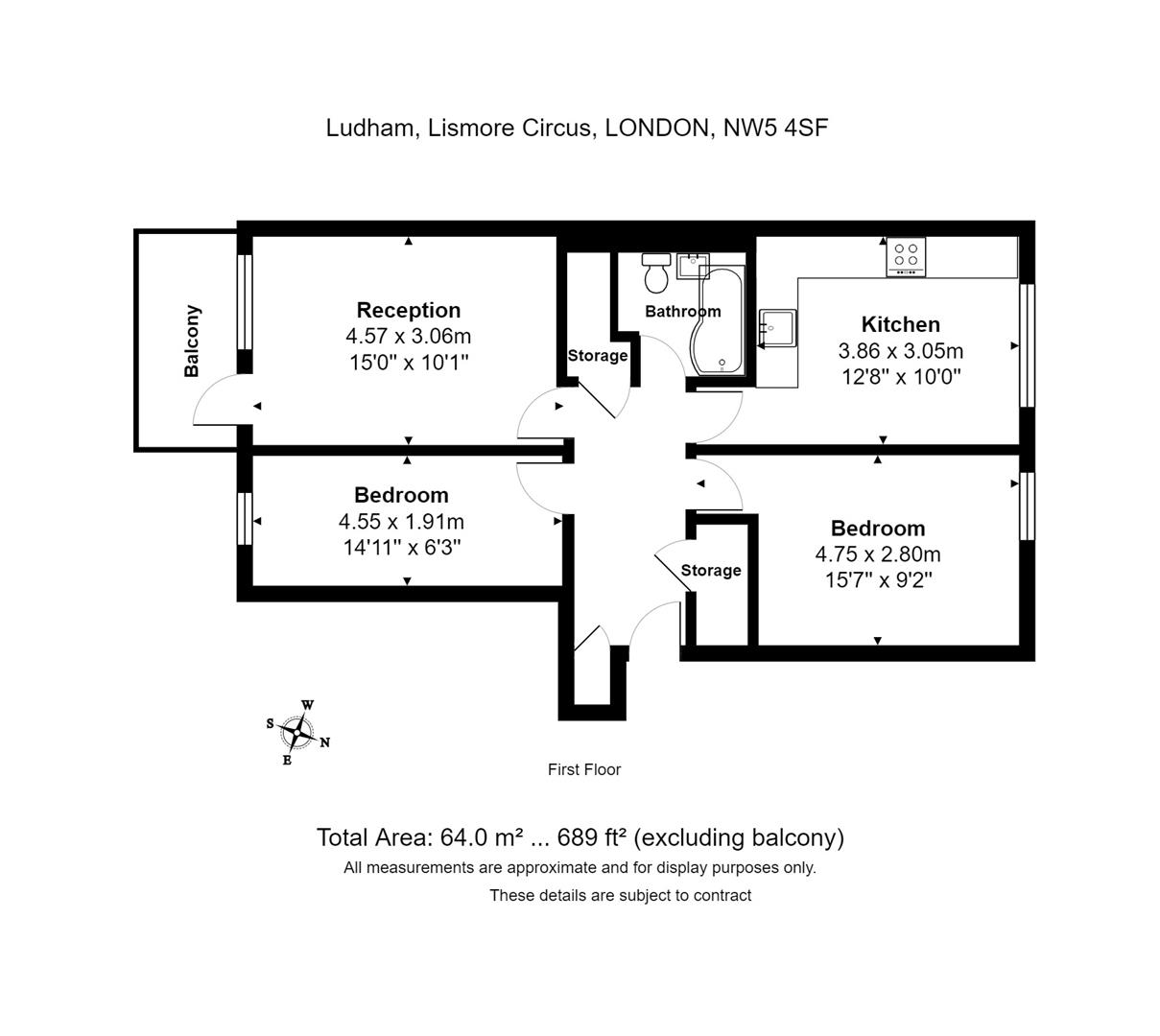 TWO BEDROOMS * BRIGHT RECEPTION * SEPARATE MODERN KITCHEN * BATHROOM * EXCELLENT AVAILABLE STORAGE * PRIVATE SOUTH FACING BALCONY * CLOSE TO HAMPSTEAD HEATH * LEASEHOLD 101 YEARS UNEXPIRED * COUNCIL TAX BAND B * EPC C