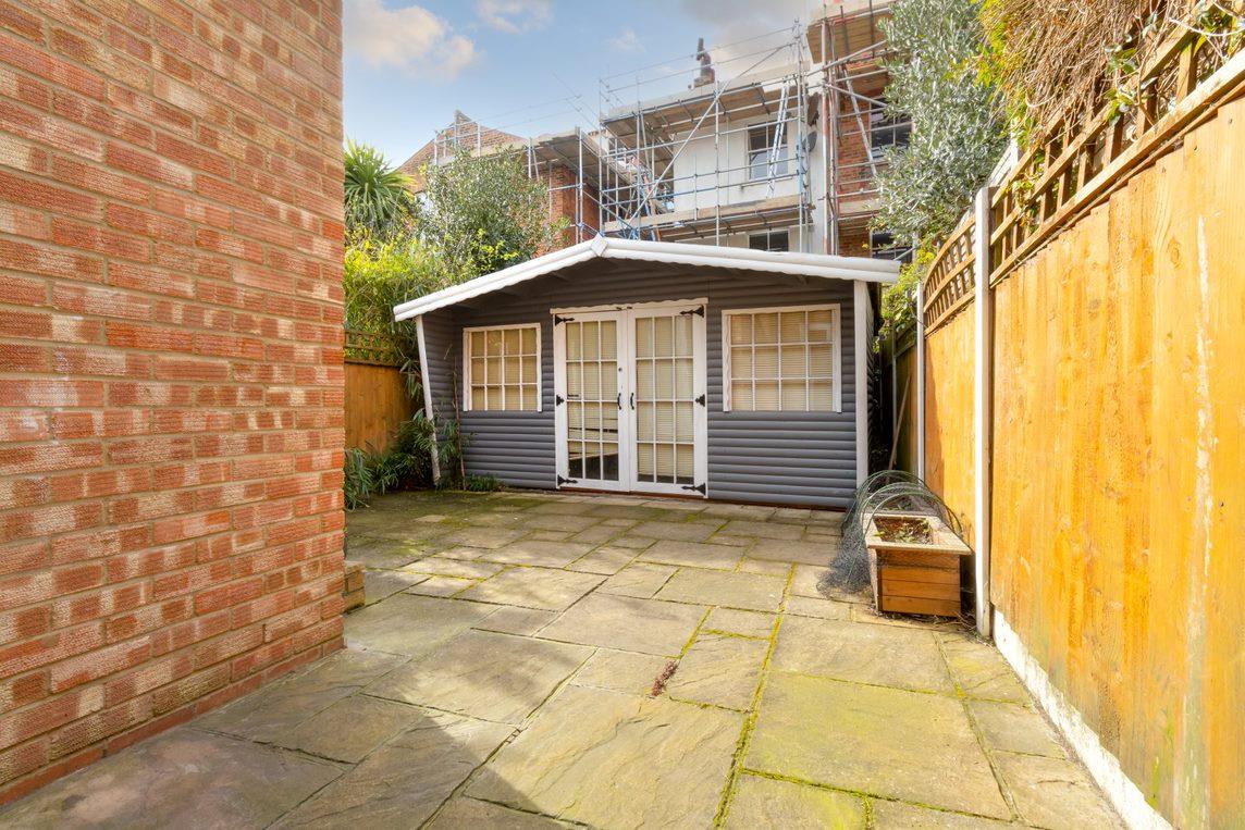The kitchen and main bedroom lead out through French doors to the garden, where there is a large garden shed with electricity supply. Both bedrooms can accommodate double beds. There is a large bathroom with bath and separate shower.