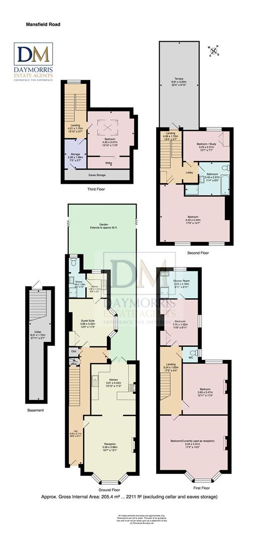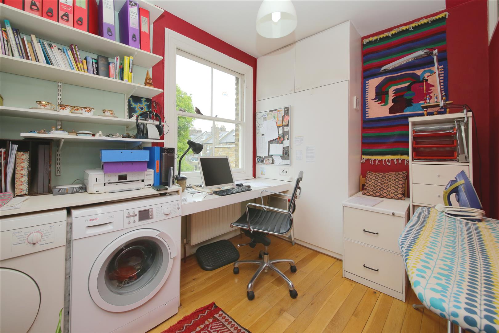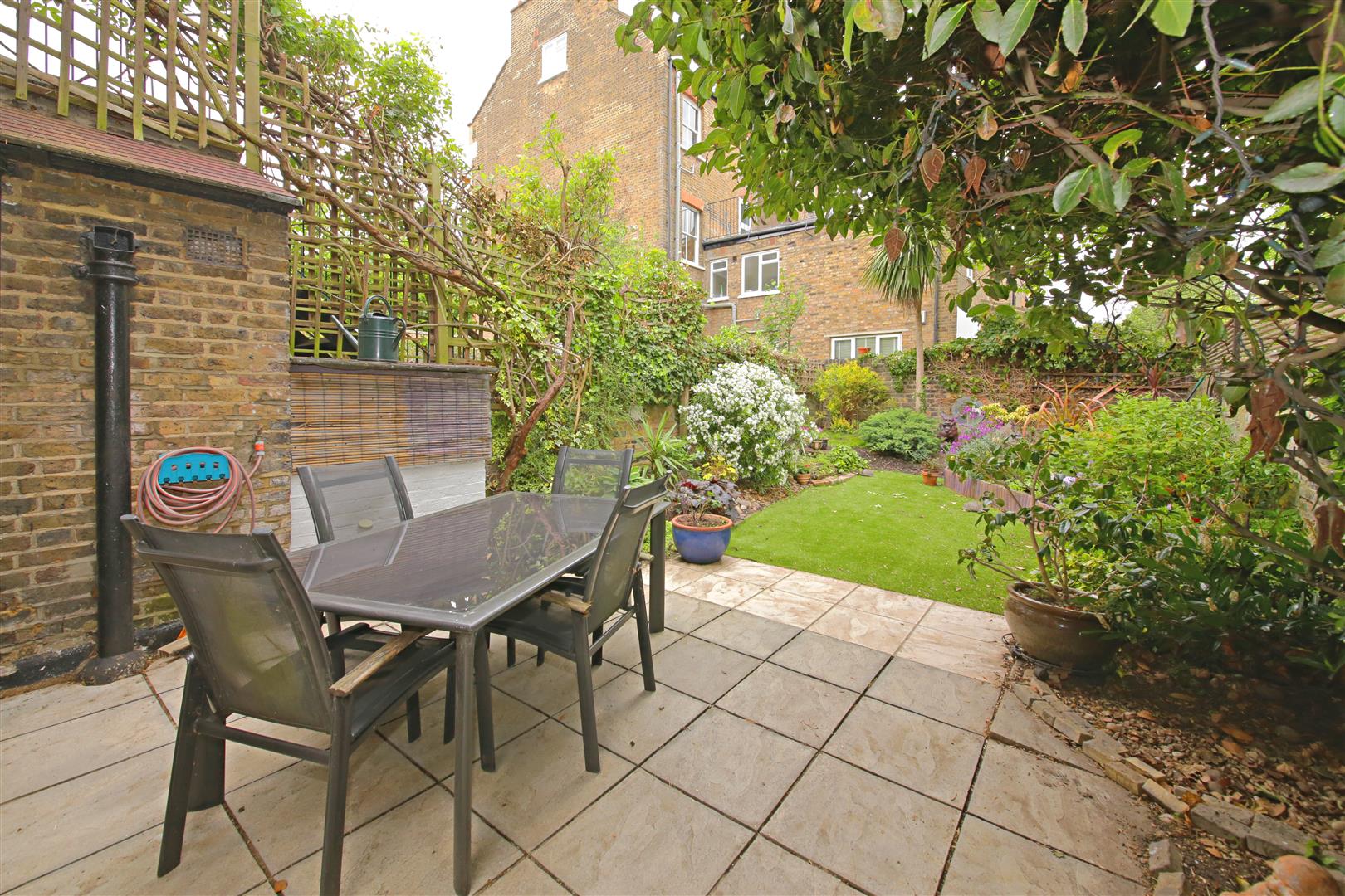A large mid-terrace Victorian house full of character and providing flexible family accommodation throughout, just a five minute walk from the Heath. Currently there are five bedrooms plus two receptions, but one could easily serve as a sixth bedroom. The present owners have maintained the property very well, and it is offered in excellent condition. The rooms are arranged over four levels and there is the additional bonus of a guest suite at the rear of the ground floor. There is also a cellar which provides good storage space, and the benefit of two outside areas in the form of a lovely terrace from the second floor and a charming rear garden, which is part paved and part lawned with attractive flower beds and shrub borders.