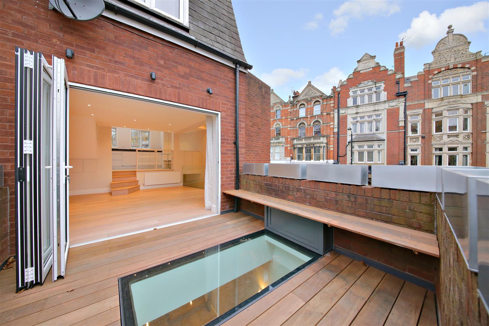 A fabulous, refurbished and rarely available 2 bedroom mews house with garage, in the heart of Hampstead Village. The property has been refurbished to a very high standard throughout with wood and stone floors and surfaces and further benefits from unique views of Hampstead High Street and across London from all windows and the private terrace that is accessed from the tri-folding patio door. The property could not have a better location being just off of Hampstead High Street and its numerous boutique’s, cafe’s and transport links. Belsize Park and Hampstead Heath are also within very easy reach. Available unfurnished.
