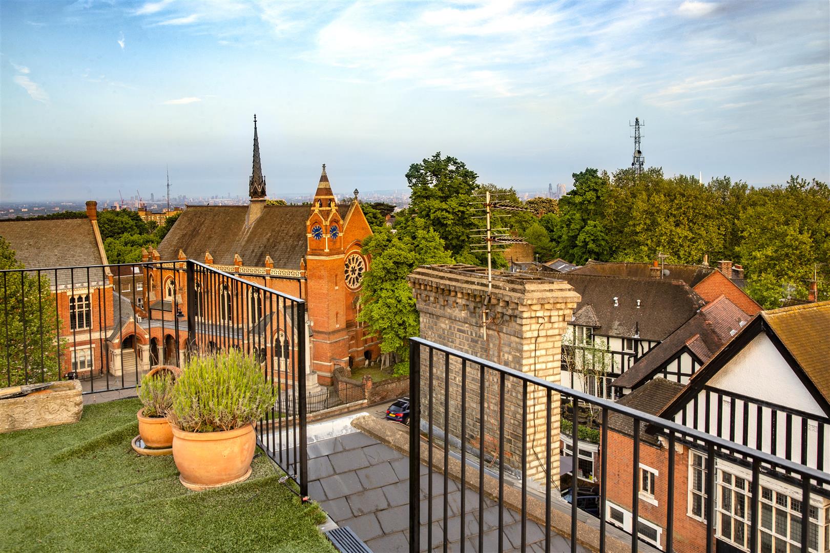 Situated in the heart of Highgate and arranged over the top two floors of this imposing period property, this flat is probably the highest in North London. The spacious reception gives direct access to a good sized balcony and further access to a non demised roof terrace. With exceptional views in all directions, this splendid 3 bedroom apartment has spacious accommodation which extends to some 1,500 sq ft. The location is also hard to match, standing proudly on the corner of North Road and Hampstead Lane, and is therefore well placed for the amenities of Highgate High Street, the rolling acres of Hampstead Heath and the convenience of Highgate (Northern Line) Underground Station.