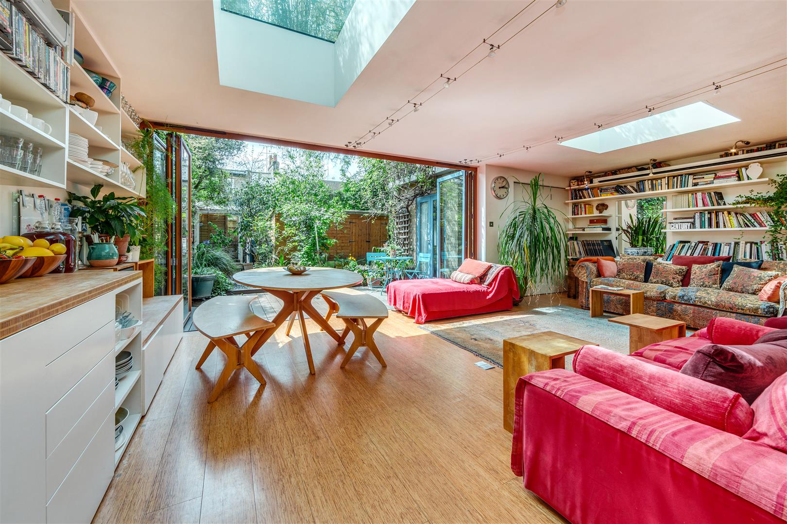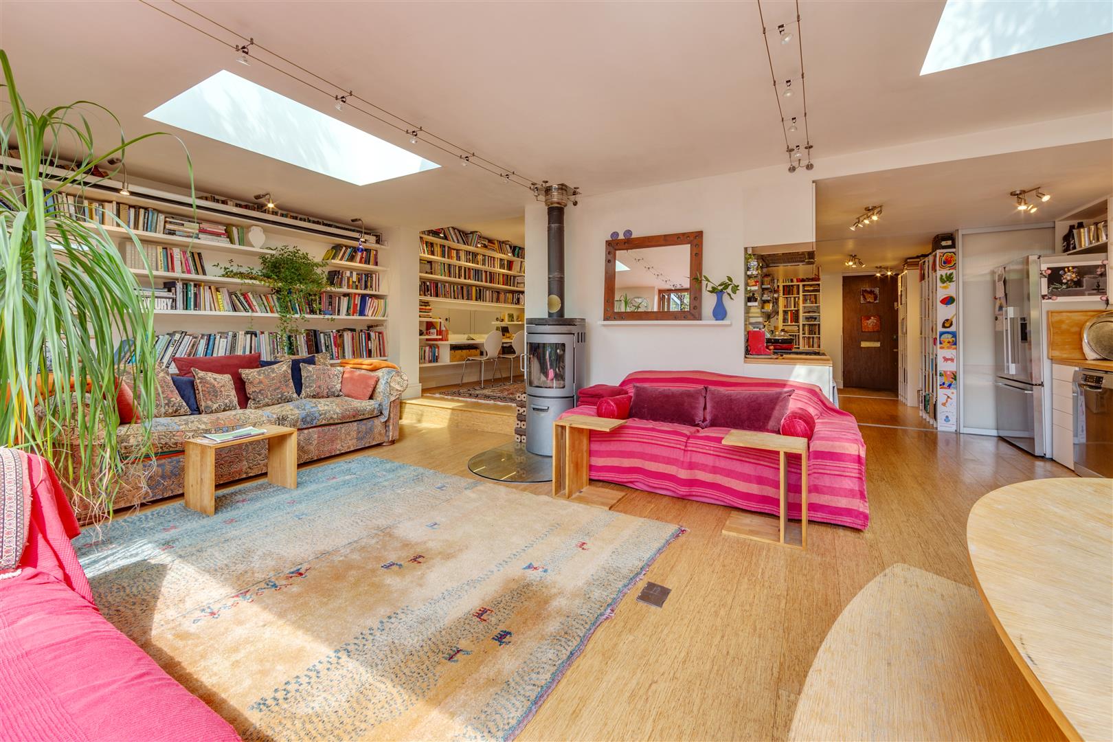 Enviably situated within the desirable setting of Oak Village, just a short walking distance from the Parliament Hill entrance to Hampstead Heath. The house provides three/four bedrooms, two bathrooms, and is uniquely designed throughout. The ground floor is fully extended, with a large kitchen/dining area leading to a wraparound reception. The entire floor is full of natural light, and sliding doors lead to a tranquil and secluded rear garden. There is also the bonus of a lovely concealed room leading from the reception, which could be an additional guest room or study. Upstairs, the spacious flow continues, with two bedrooms and a family bathroom, plus a well designed mezzanine level. With accommodation close to 1500 square feet, this is house is a true gem, forming an integral part of Oak Village. Along with the Heath itself, Parliament Hill lido, Gospel Oak Primary School and the excellent local bus and rail links, are all located nearby.