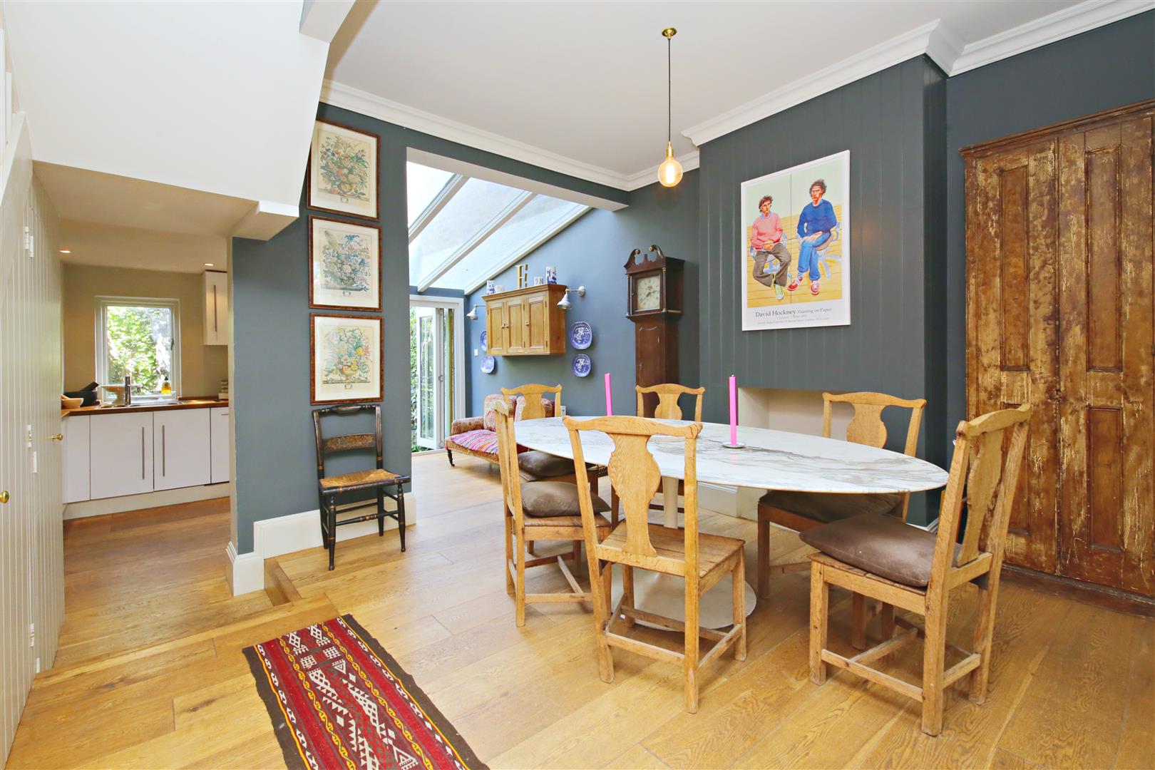 An outstanding three double bedroom, three storey mid-terrace Victorian house set within this very attractive and highly sought after quiet residential street. Internally the accommodation is in excellent condition throughout, with original reception room period features including working fireplace, window shutters and high ceilings, this then leads to the dining room and on to the extended fully fitted kitchen and conservatory with bi-folding doors accessing the charming garden. The first floor offers two well-proportioned double bedrooms and family bathroom. Leading up to the second floor landing is a roof terrace and on the top floor is the master bedroom with an en-suite custom shower room plus an additional south facing roof terrace. Quadrant Grove is positioned with easy access to various transport options such as Chalk Farm (Underground), Gospel Oak (Overground) plus many bus routes into and out of the City. Hampstead Heath is also just a few minutes walk away.