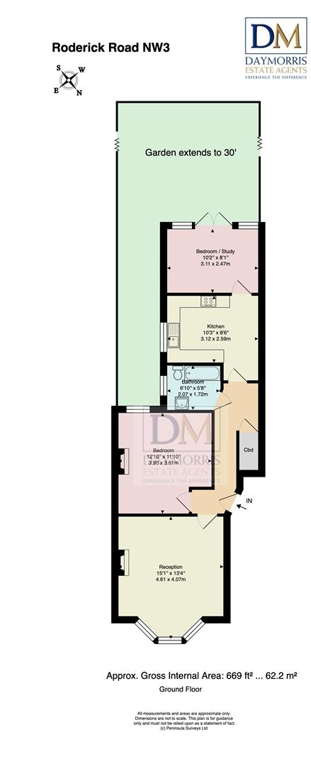 A charming one or two bedroom ground floor garden apartment within this terraced Victorian house. The flexible accommodation can be utilised as either a generous one bedroom with the original front bay window as a reception room, large bedroom and study to the rear, or utilised as a two double bedroom with the potential of adding an en-suite, here is also a well proportioned kitchen, separate bathroom plus the sunny private south west facing private garden. Furthermore, subject to the usual consents, the side and rear has potential to extend. At the top of Roderick Road, there is a footbridge to Hampstead Heath, and easy access to the City and West End can be found at both Belsize Park and Hampstead Heath stations, along with the excellent 24 and 46 bus routes.