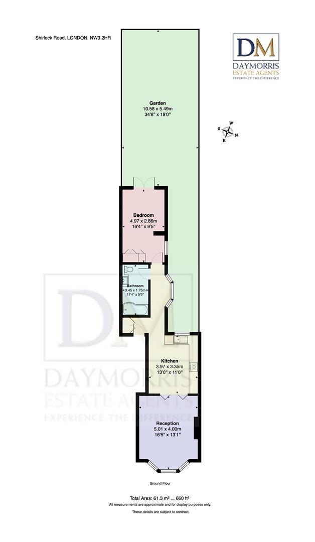 This superb one double bedroom garden flat with high quality fittings installed throughout, is spacious and bright, with a large kitchen/diner, plus an attractive reception with lofty ceiling height. To the rear is a private south west facing garden, with potential to extend into the side return (subject to the usual planning consent). Hampstead Heath is accessed via the footbridge to Parliament Hill, just at the top of the road, and South End Green is within easy walking distance. CHAIN FREE.