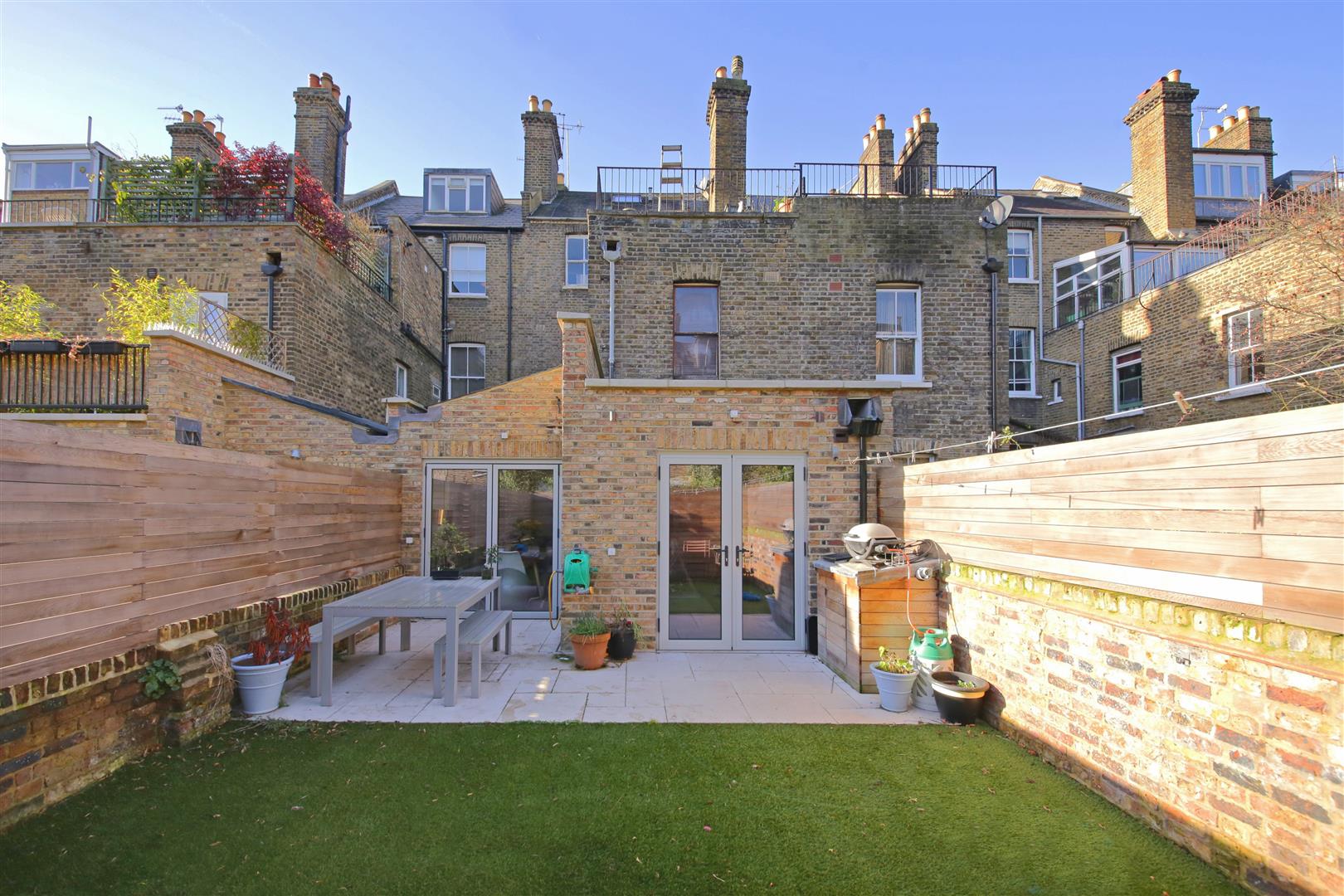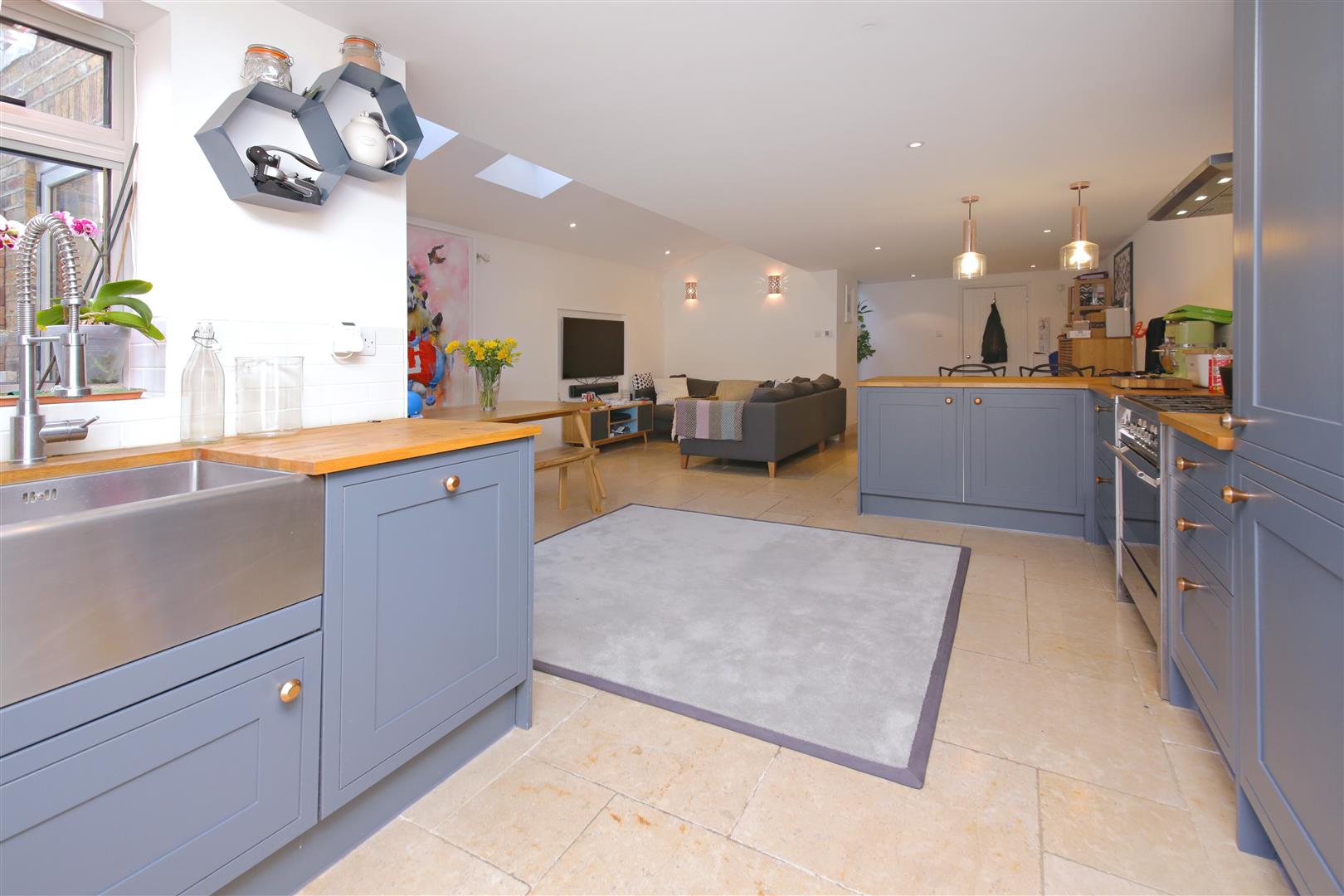 An excellent example of a recently extended and refurbished two double bedroom ground floor garden apartment set within this well maintained mid-terrace Victorian house being very close proximity to Hampstead Heath. Internally the apartment offers in excess of 1000 sq ft and accommodation and comprises a master bedroom set into a bay window with extensive built-in wardrobes, generous double second bedroom with a built-in wardrobe which leads to an attractive courtyard. There is also an impressive family bathroom with a Japanese style Jacuzzi bath and separate walk-in shower. Living and entertaining space is in abundance with the 31’9 x 17’3 reception room, open plan fully fitted kitchen/breakfast bar, under floor heating throughout, with skylights and two sets of glass doors with an abundance of a natural light. Additionally there is also a 25′ private garden and a 27’cellar providing ample of extra storage. Share of Freehold. Viewing highly recommended.