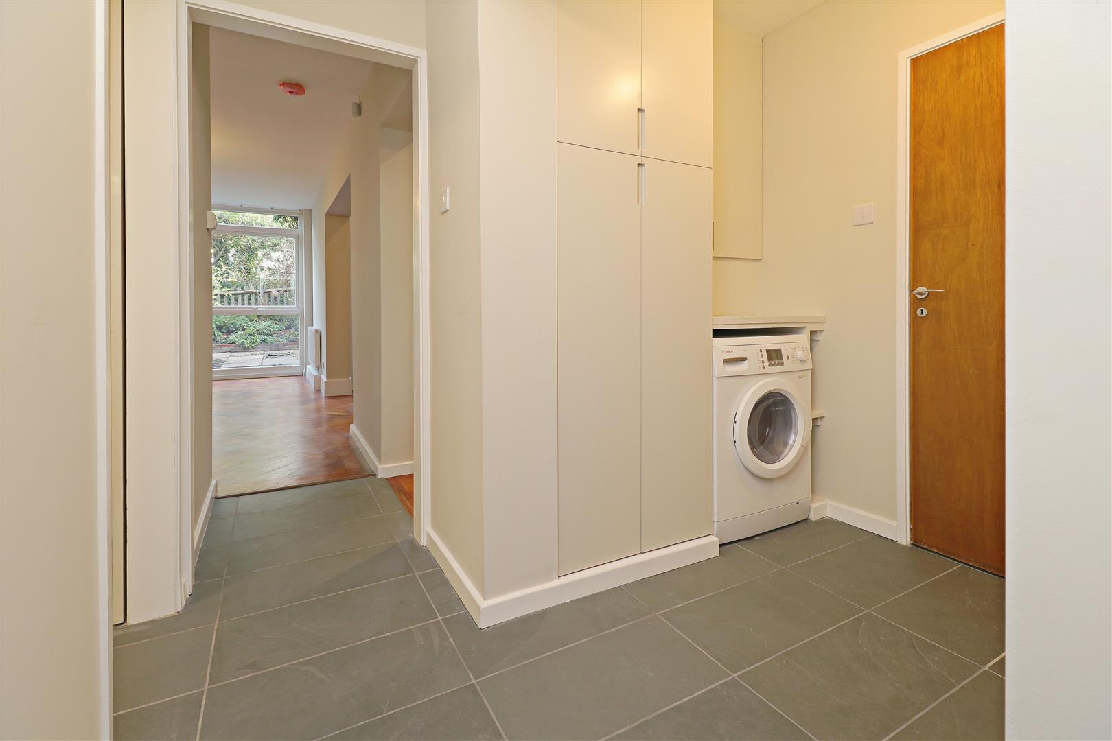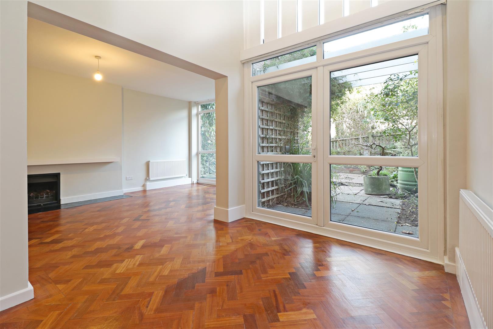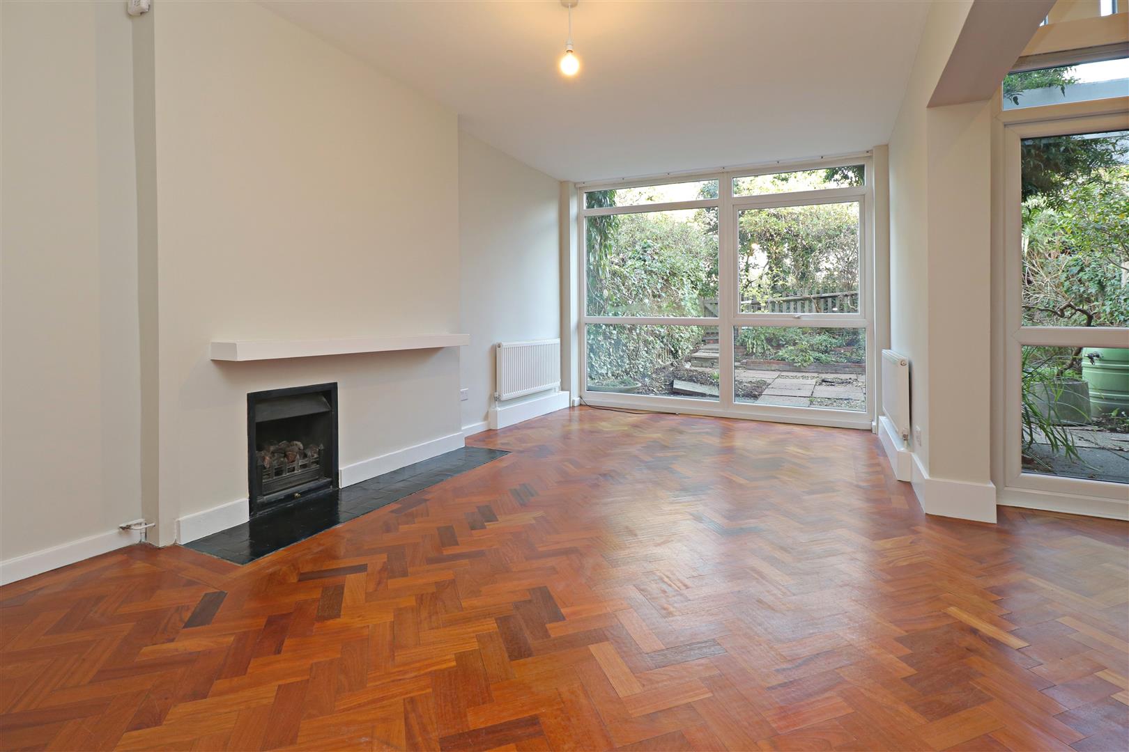 New to the market this three-bedroom Modernist house with off-street parking, a private garden and extensive communal gardens. It forms part of the Southwood House Estate, a triangle of residences built in the early 1960s to a design by the architects Andrews, Emerson, Sherlock & Keable, and is a short walk from Highgate Village and the Underground station. On the ground floor is an entrance hall, with access to a garage on one side. Left of the hall, is the kitchen, and to the rear is the reception room and dining area with double-glazed French doors to the garden. The dining area is double-height and overlooked by a window that reaches to the first floor, flooding the stairs and landing above with natural light. The first floor contains two double bedrooms, a single bedroom / study, a bathroom and a separate WC. The house retains much of its original interior, including an elegant open-tread staircase, and parquet flooring on the ground floor. There is a front garden with an off-street parking space and a paved garden at the rear, which in turn, leads onto the private communal gardens. The Southwood House Estate was developed between 1958 and 1962 on the site of the former Southwood House (c1745), which had become derelict and subsequently burned down. The development was deliberately sited around the grounds of the old house, and these now form a very attractive and sizeable communal space with splendid mature trees, which is for the sole use of residents. Highgate Village has a wide variety of shops, cafés, pubs and restaurants. The open spaces of Hampstead Heath and Waterlow Park, and the ancient Highgate Wood and Queen’s Wood, are all close at hand. The house is a short walk from Highgate Underground station (Northern Line), and from the stop for the number 43 bus, which runs direct to Moorgate, Bank and London Bridge. There is also a stop for the 134 bus, which serves Camden Town and Tottenham Court Road.