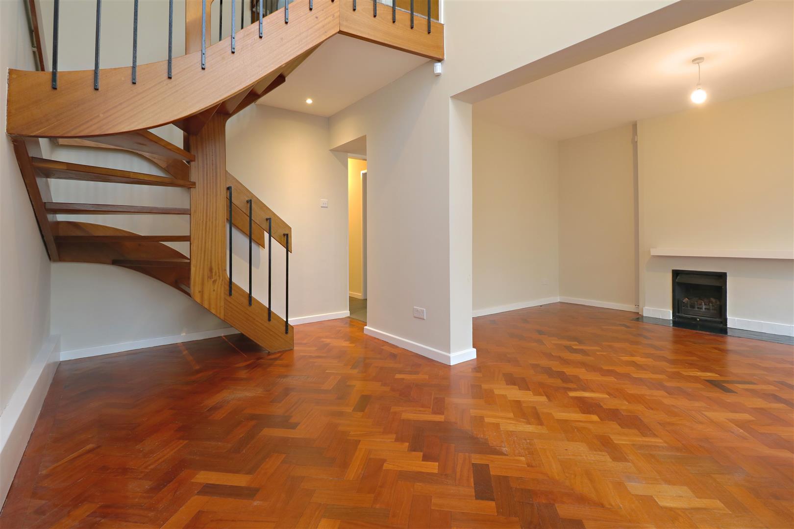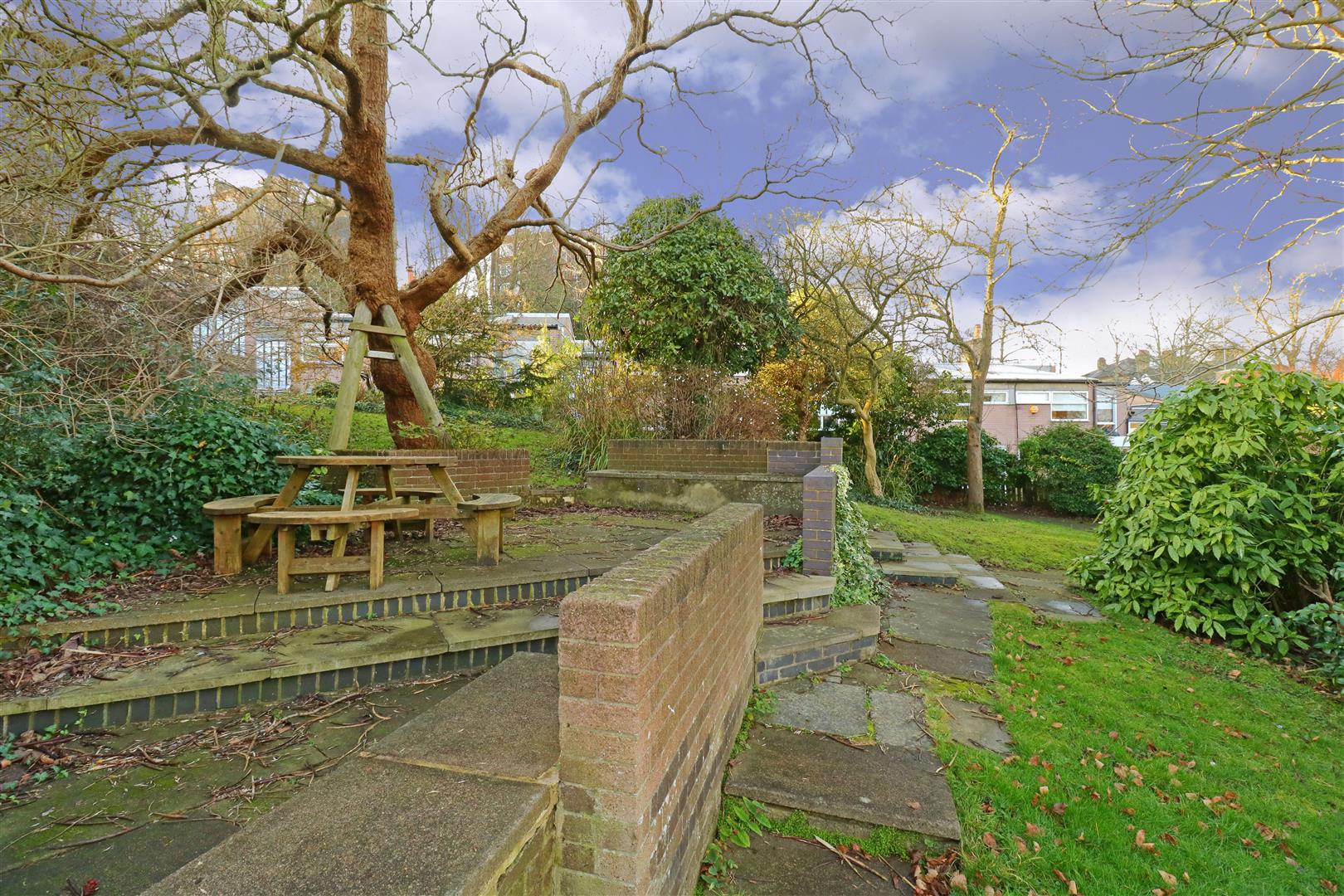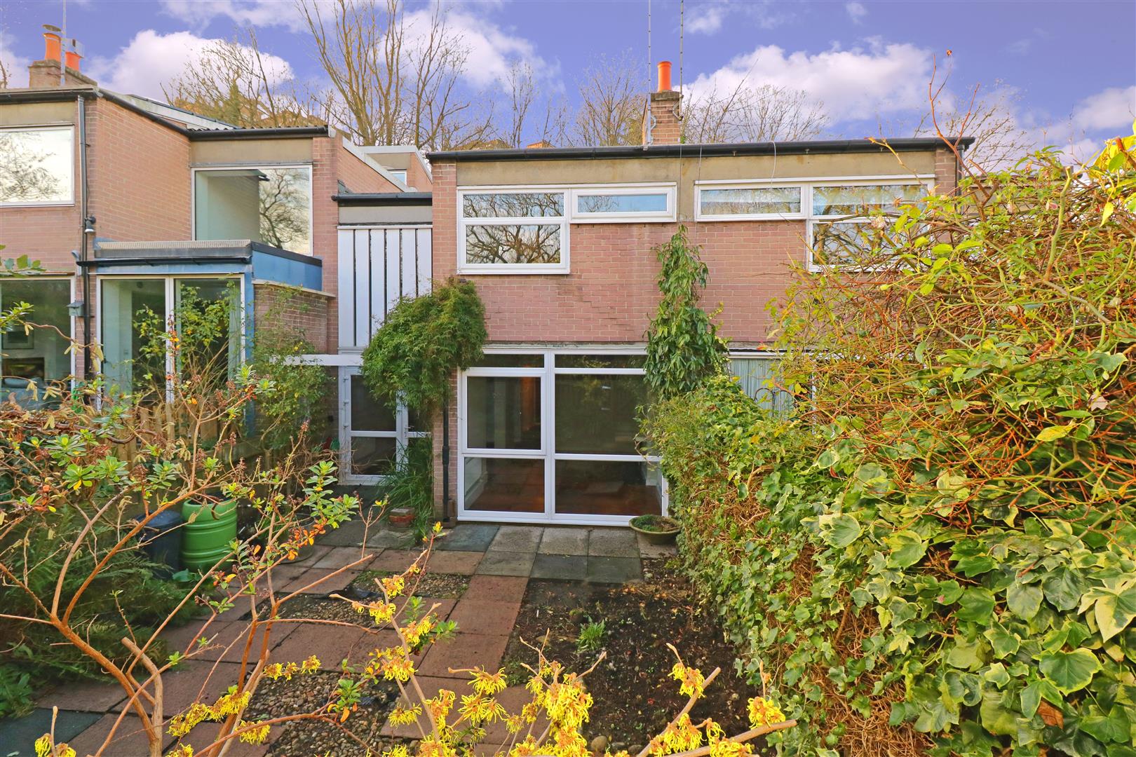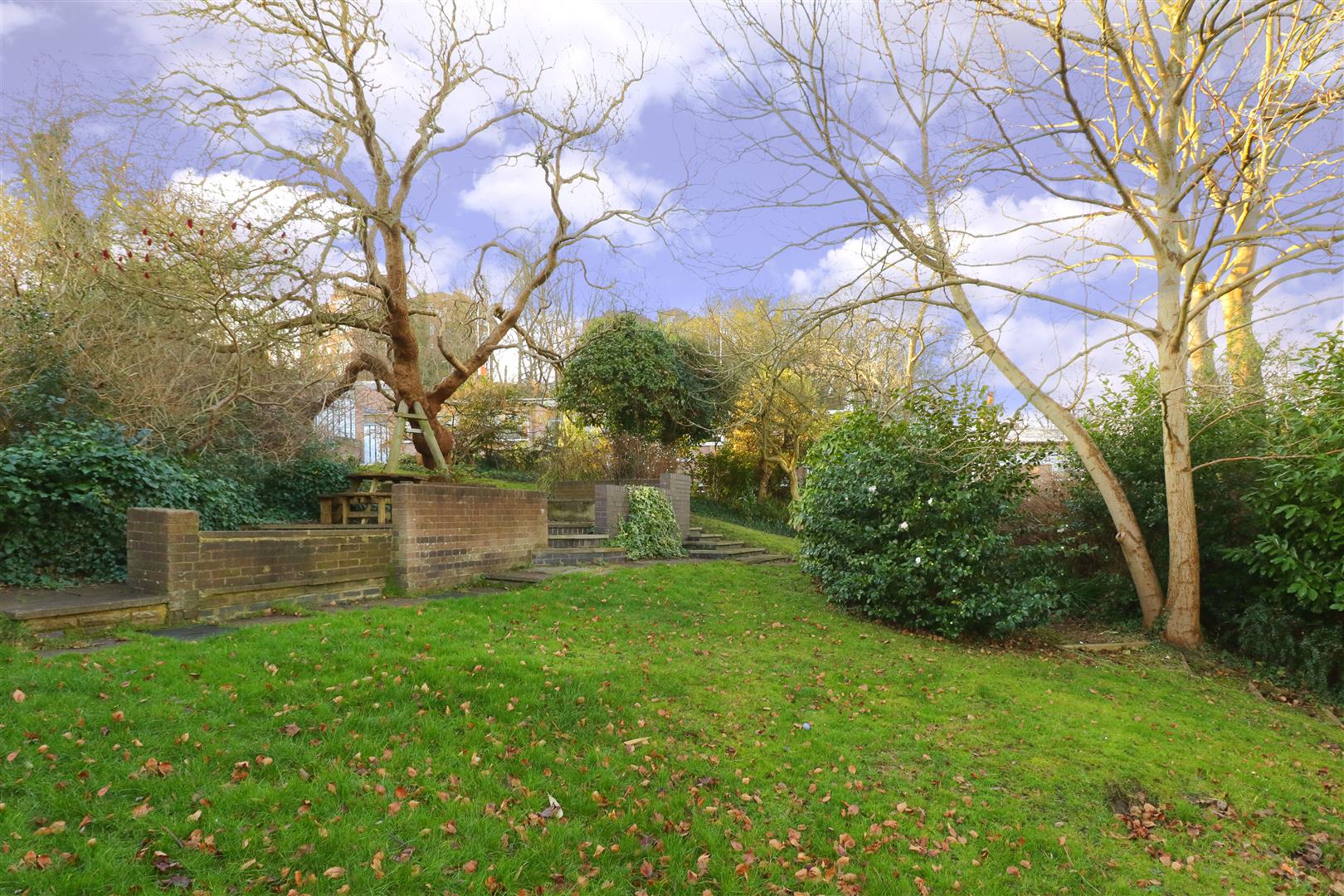 New to the market this three-bedroom Modernist house with off-street parking, a private garden and extensive communal gardens. It forms part of the Southwood House Estate, a triangle of residences built in the early 1960s to a design by the architects Andrews, Emerson, Sherlock & Keable, and is a short walk from Highgate Village and the Underground station. On the ground floor is an entrance hall, with access to a garage on one side. Left of the hall, is the kitchen, and to the rear is the reception room and dining area with double-glazed French doors to the garden. The dining area is double-height and overlooked by a window that reaches to the first floor, flooding the stairs and landing above with natural light. The first floor contains two double bedrooms, a single bedroom / study, a bathroom and a separate WC. The house retains much of its original interior, including an elegant open-tread staircase, and parquet flooring on the ground floor. There is a front garden with an off-street parking space and a paved garden at the rear, which in turn, leads onto the private communal gardens. The Southwood House Estate was developed between 1958 and 1962 on the site of the former Southwood House (c1745), which had become derelict and subsequently burned down. The development was deliberately sited around the grounds of the old house, and these now form a very attractive and sizeable communal space with splendid mature trees, which is for the sole use of residents. Highgate Village has a wide variety of shops, cafés, pubs and restaurants. The open spaces of Hampstead Heath and Waterlow Park, and the ancient Highgate Wood and Queen’s Wood, are all close at hand. The house is a short walk from Highgate Underground station (Northern Line), and from the stop for the number 43 bus, which runs direct to Moorgate, Bank and London Bridge. There is also a stop for the 134 bus, which serves Camden Town and Tottenham Court Road.