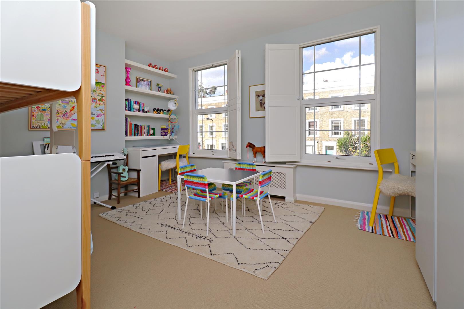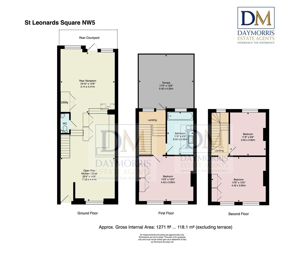 An excellent three double bedroom, three storey mid-terrace Victorian house within this quiet cul-de-sac enclave. Offering almost 1300 sq ft, the generous accommodation is in excellent condition throughout. The ground floor has been fully extended to the rear and provides a large reception room leading out to the rear courtyard. Moving up to the first floor landing having direct access to a 17’9 x 13’9 south facing roof terrace with an open outlook. Additionally, on the first floor there is a large family bathroom and one of the double bedrooms. On the top floor (second) are also two further double bedrooms. Ideally located with various transport options to hand with West Kentish Town Overground and Chalk Farm Underground (Northern line) only a few minutes walk away. An ideal family home.