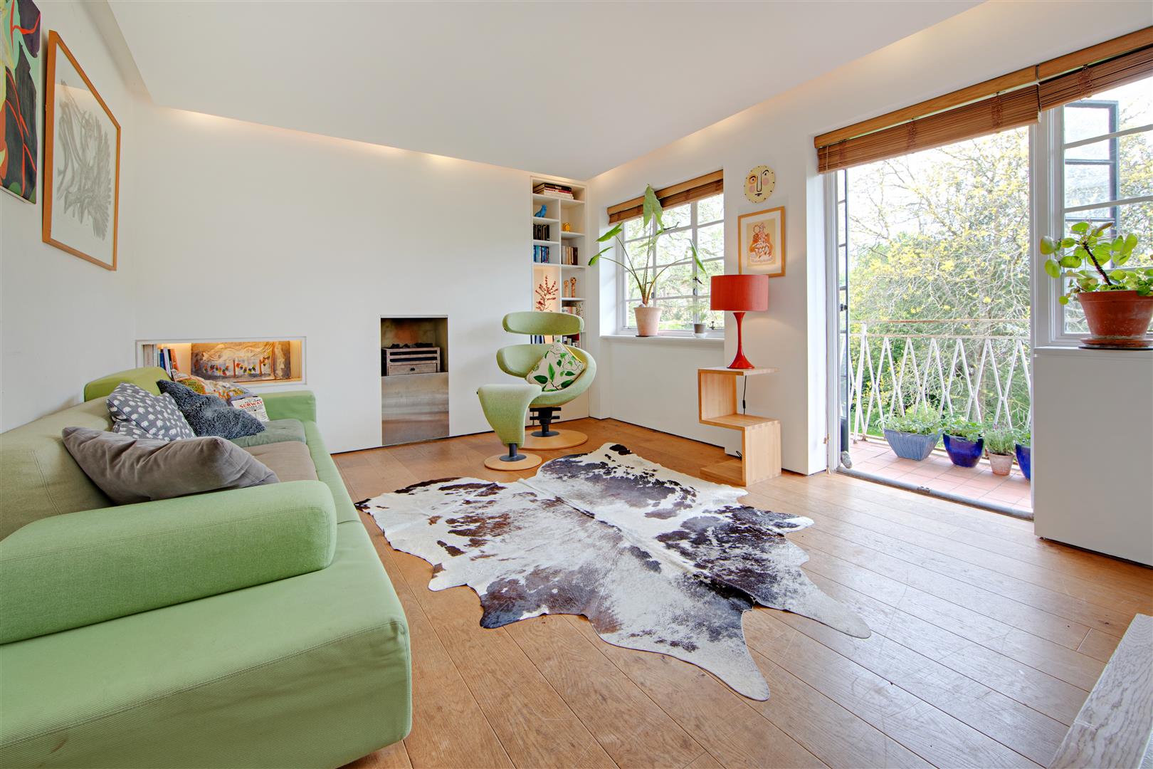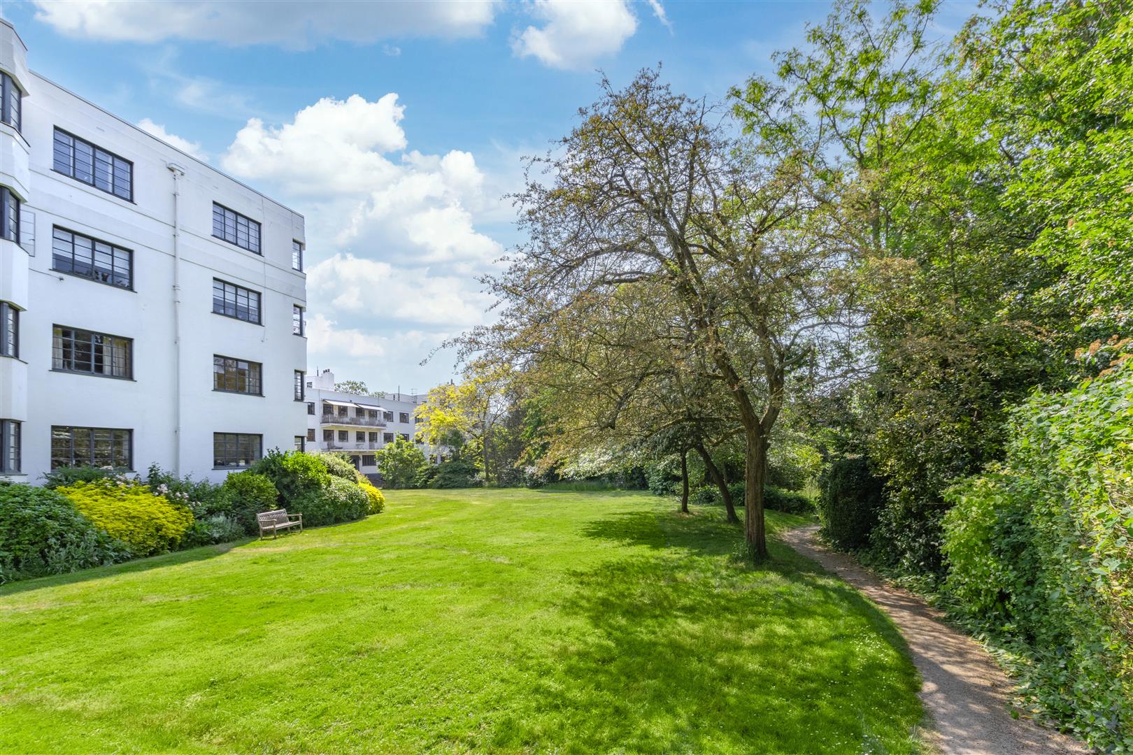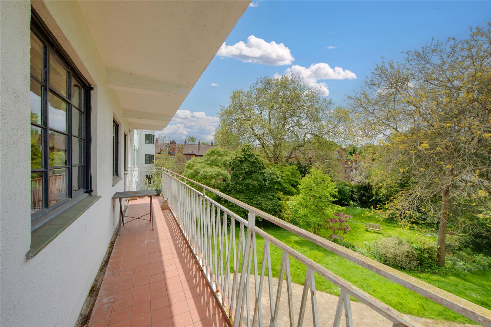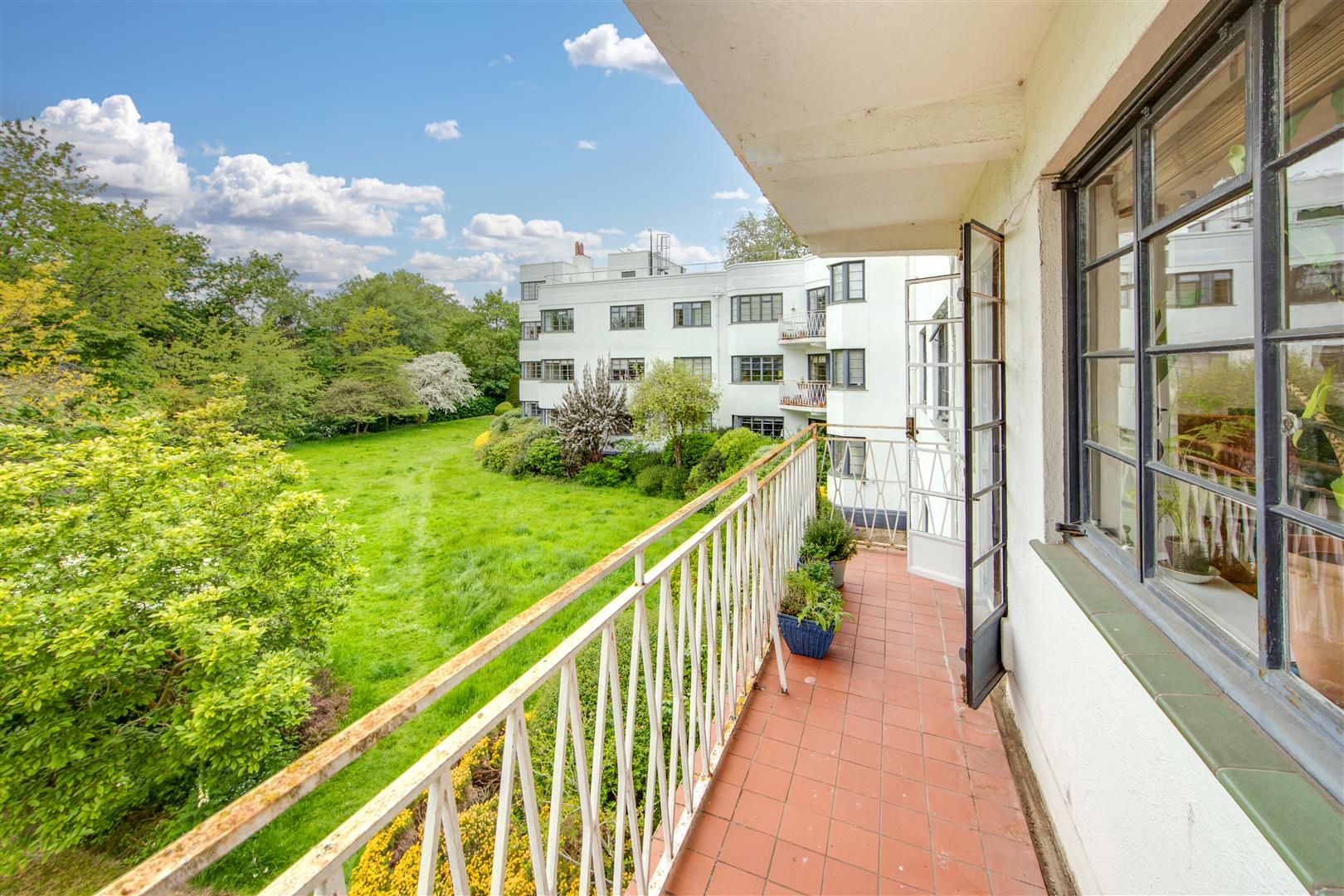 A stylish first floor flat in an attractive Art Deco style purpose built block with West facing balcony and lovely views towards Hampstead Heath. The flat has imaginatively designed flexible accommodation featuring a double reception room that currently is divided to provide a third bedroom. Situated in extensive communal grounds, that are adjacent to Highgate Ponds and Hampstead Heath, the gardens have private squash and tennis courts. Millfield Lane is a turning off Highgate West Hill, close to specialist shops, cafes and eateries in Swains Lane.