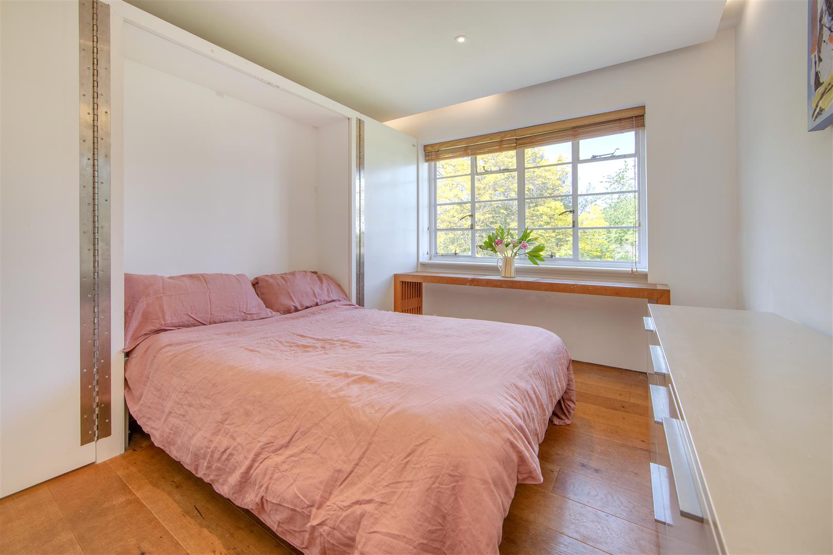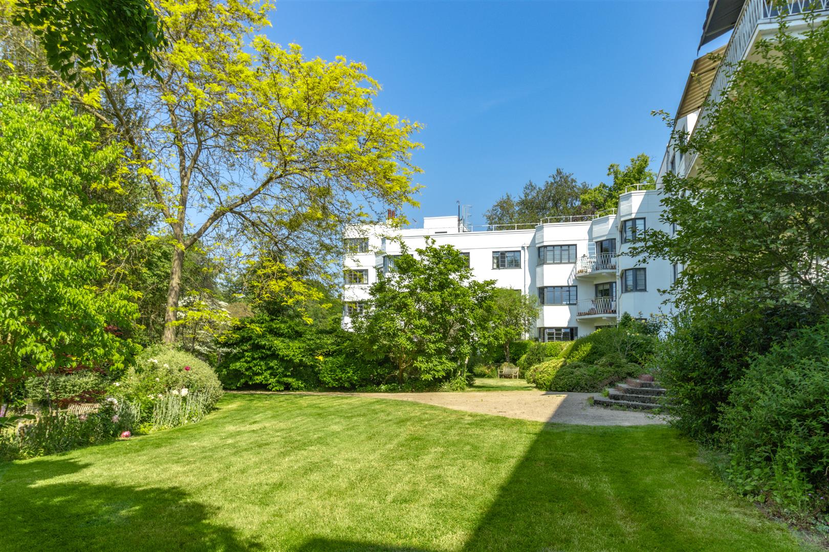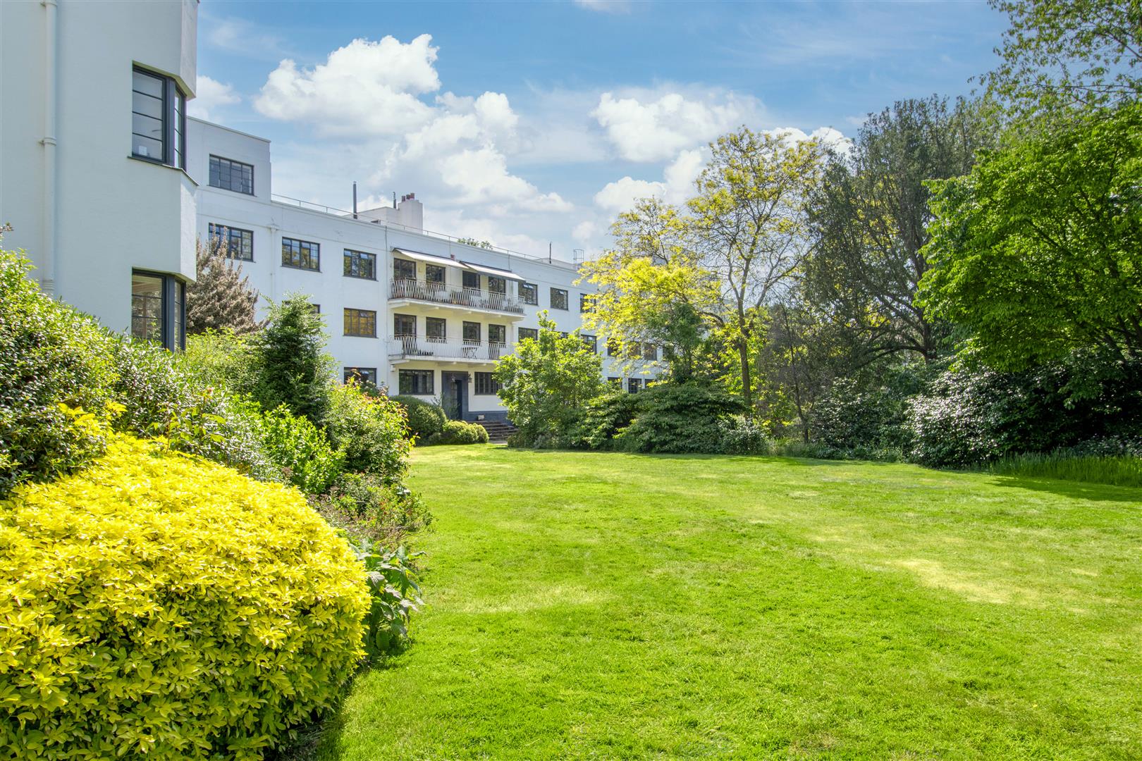 A stylish first floor flat in an attractive Art Deco style purpose built block with West facing balcony and lovely views towards Hampstead Heath. The flat has imaginatively designed flexible accommodation featuring a double reception room that currently is divided to provide a third bedroom. Situated in extensive communal grounds, that are adjacent to Highgate Ponds and Hampstead Heath, the gardens have private squash and tennis courts. Millfield Lane is a turning off Highgate West Hill, close to specialist shops, cafes and eateries in Swains Lane.