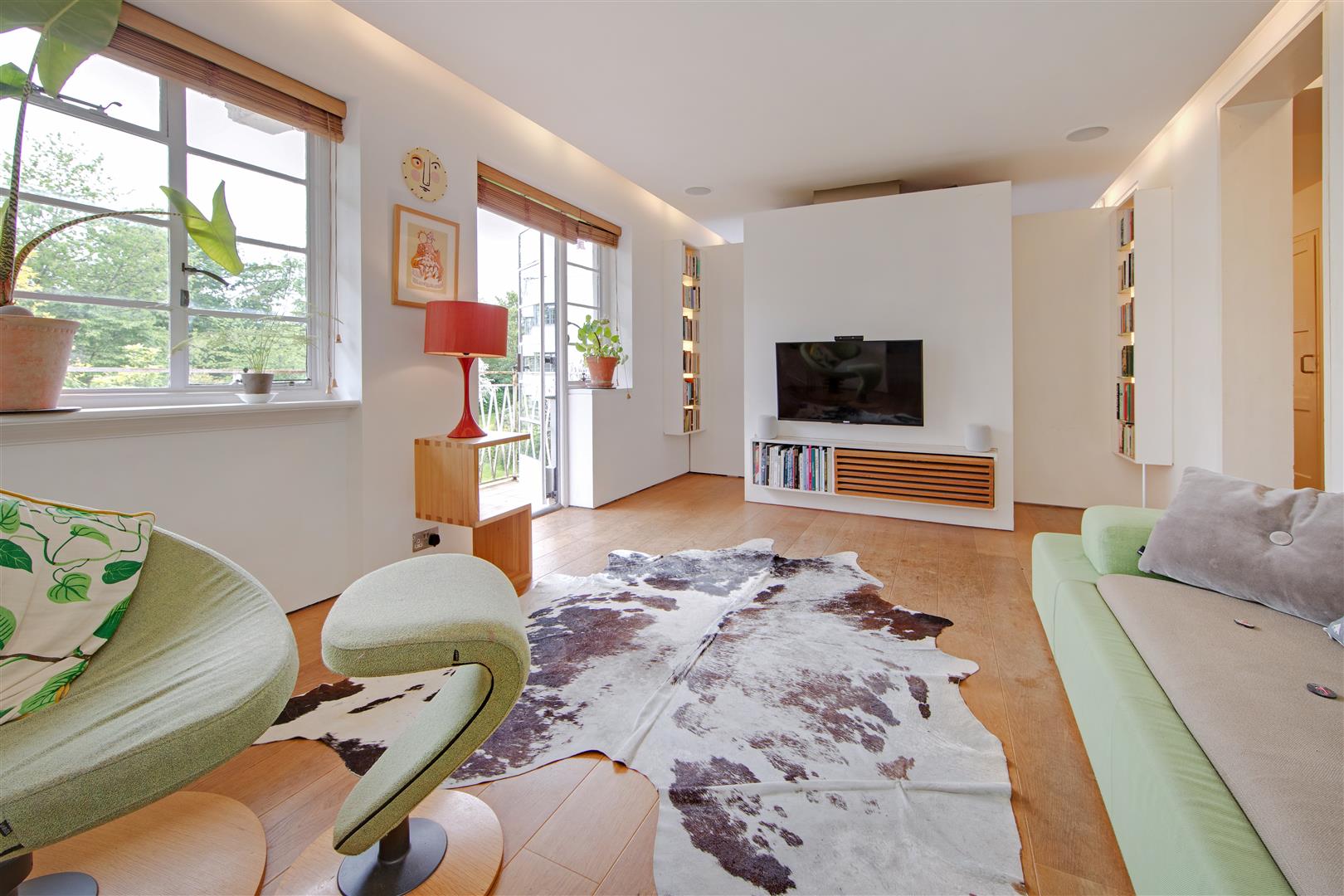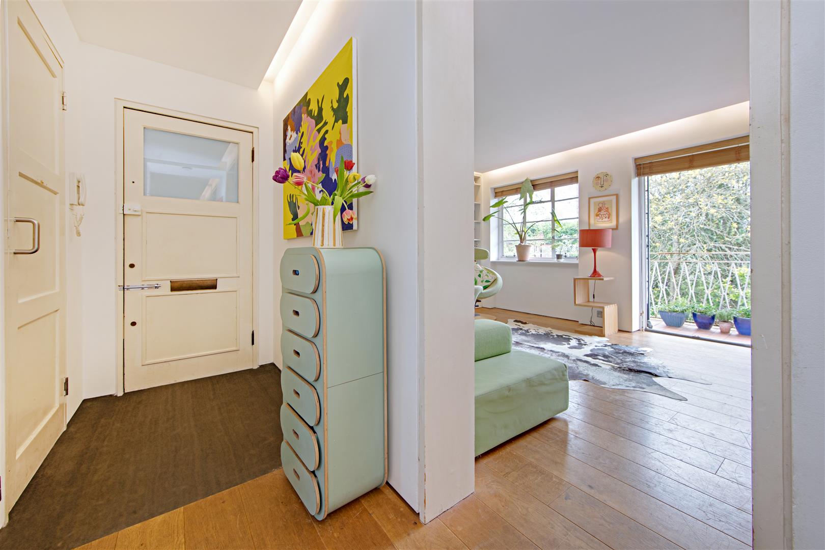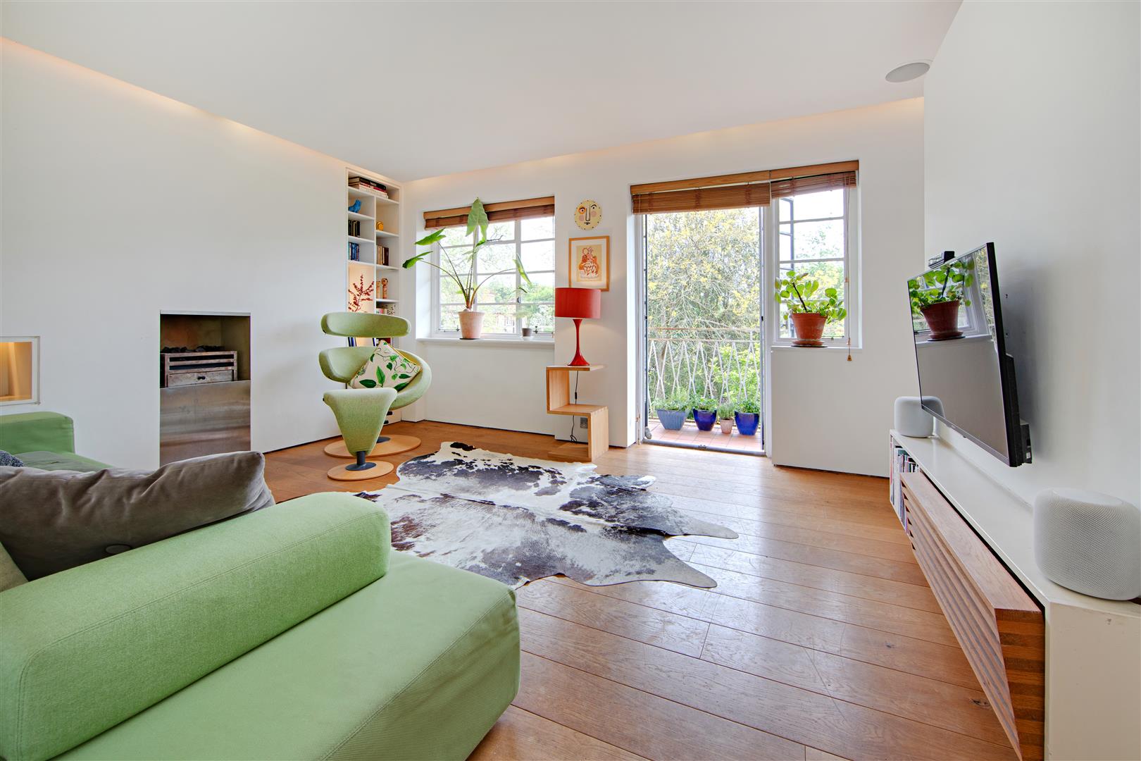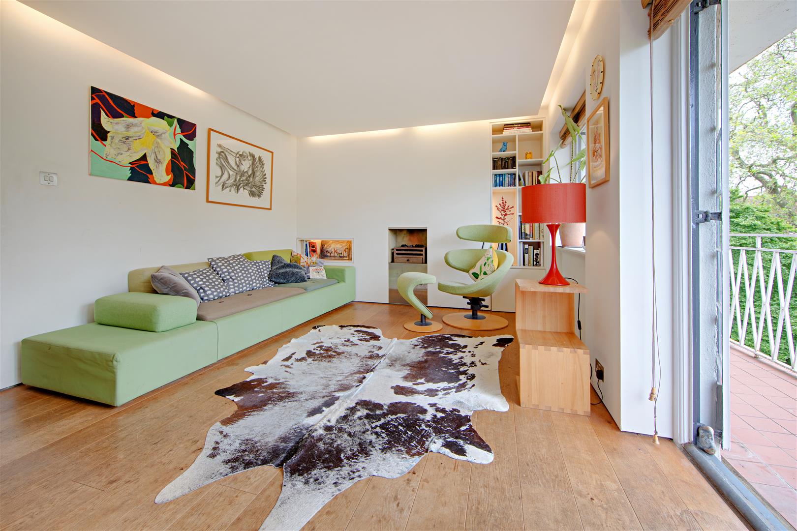 A stylish first floor flat in an attractive Art Deco style purpose built block with West facing balcony and lovely views towards Hampstead Heath. The flat has imaginatively designed flexible accommodation featuring a double reception room that currently is divided to provide a third bedroom. Situated in extensive communal grounds, that are adjacent to Highgate Ponds and Hampstead Heath, the gardens have private squash and tennis courts. Millfield Lane is a turning off Highgate West Hill, close to specialist shops, cafes and eateries in Swains Lane.